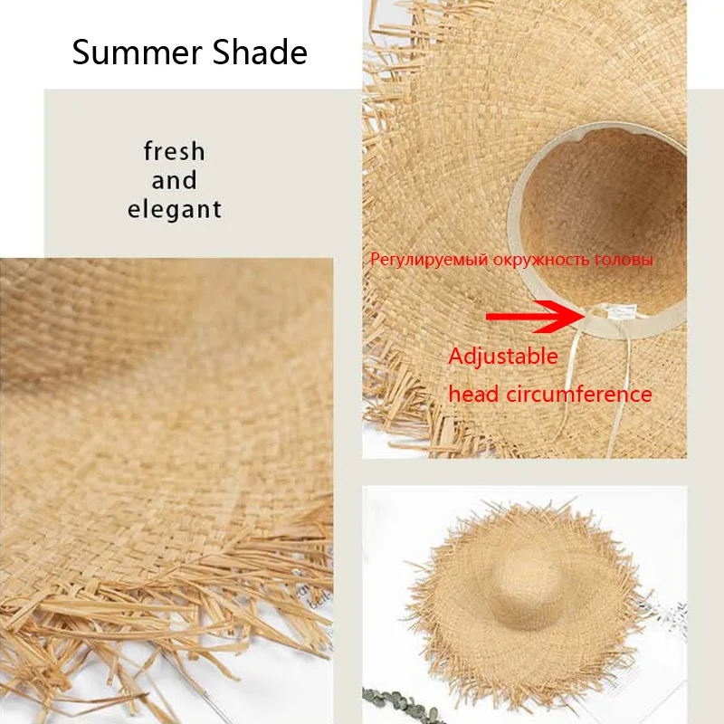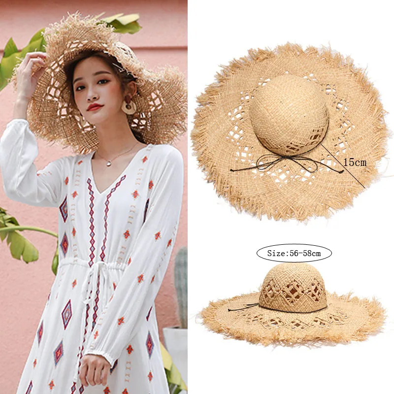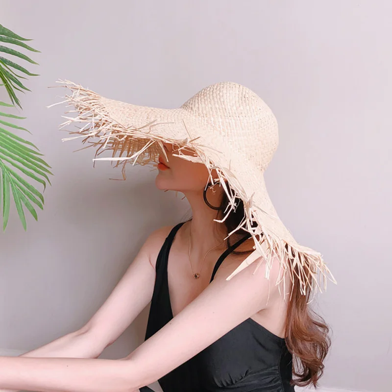 Шляпа Соломенная женская, с широкими полями, из натуральной рафии, летняя