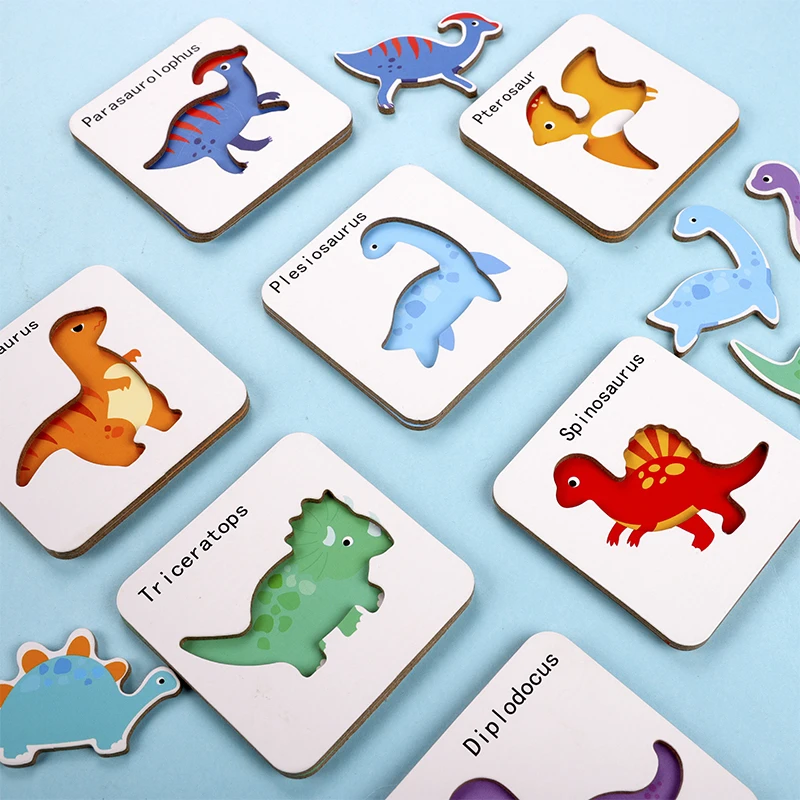 Обучающие игрушки в виде животных, деревянные пазлы в виде динозавра