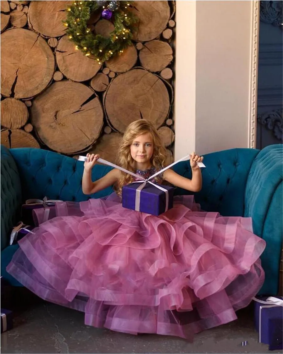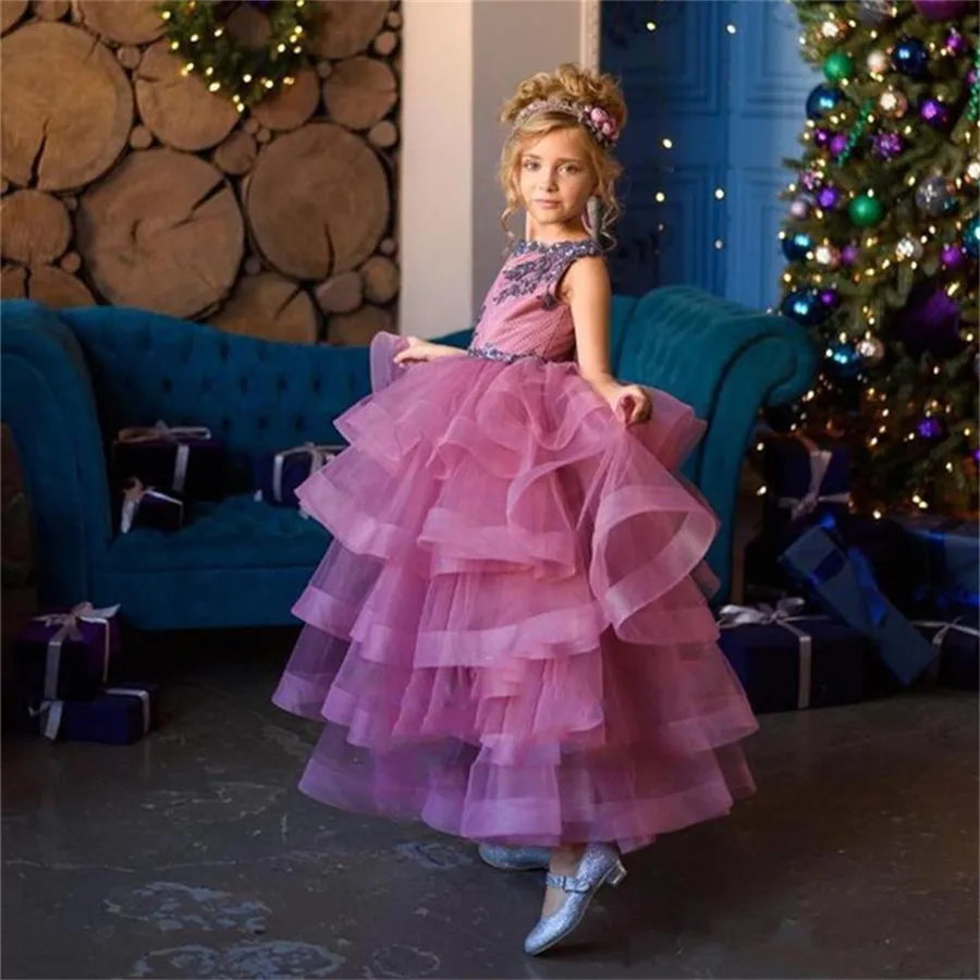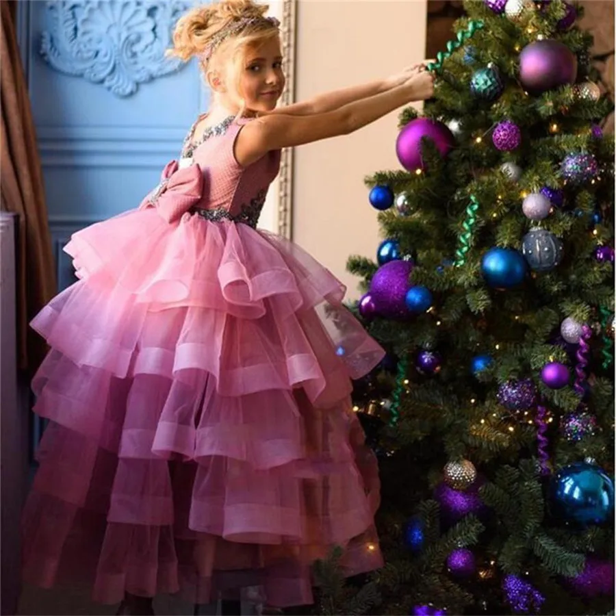 Платье для девочки с цветочным рисунком, Каскадное Тюлевое платье на свадьбу, торжественное мероприятие, с аппликацией и бантом, для дня рождения, для детей, для первого Святой причастия