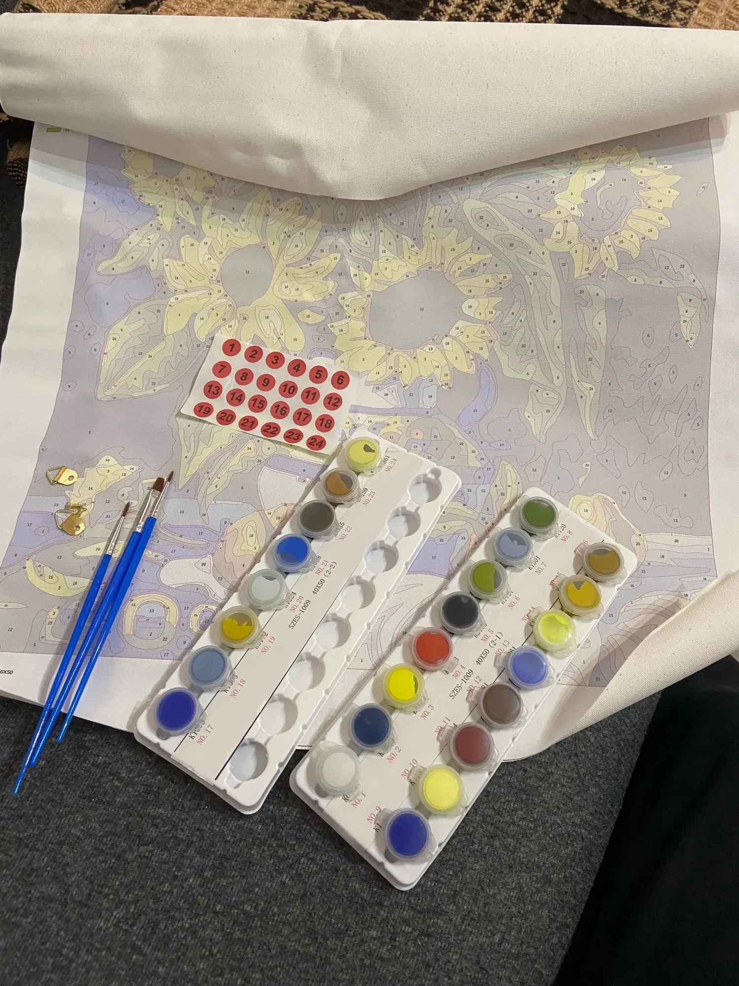 Вот и пришла моя прелесть! Шла очень долго в Израиль, отправили также поздно, но в конце концов она пришла! Из минусов, скажу, что бывает сложно закрашивать цифры светлыми красками, цифры могли бы быть напечатаны менее ярко. Краски неплохие, но кисти так себе, я докупила ещё набор более плотных кистей. В целом, прекрасная возможность провести приятно время