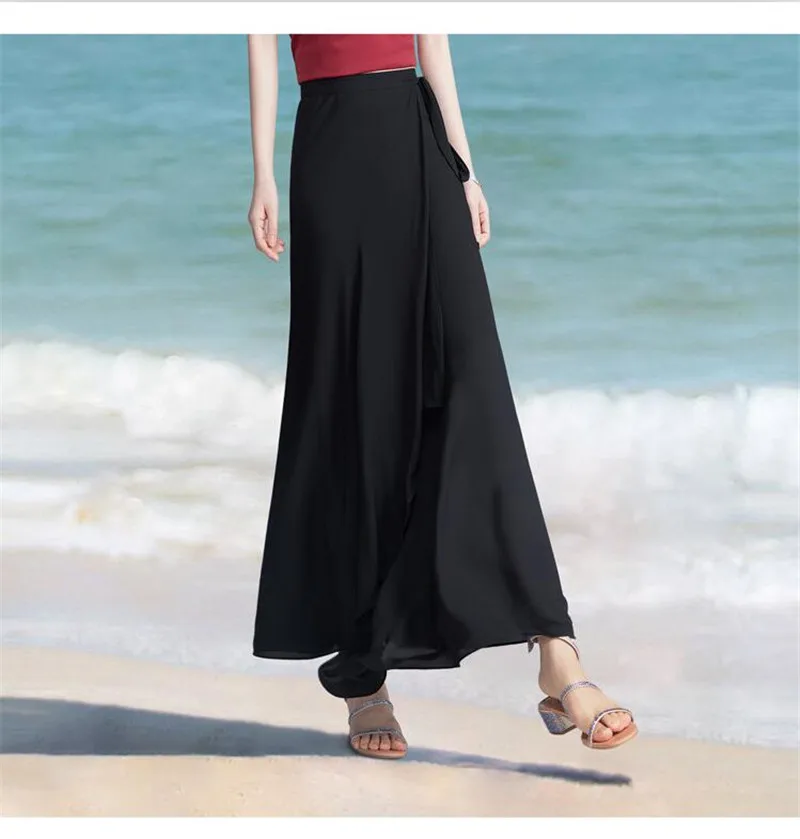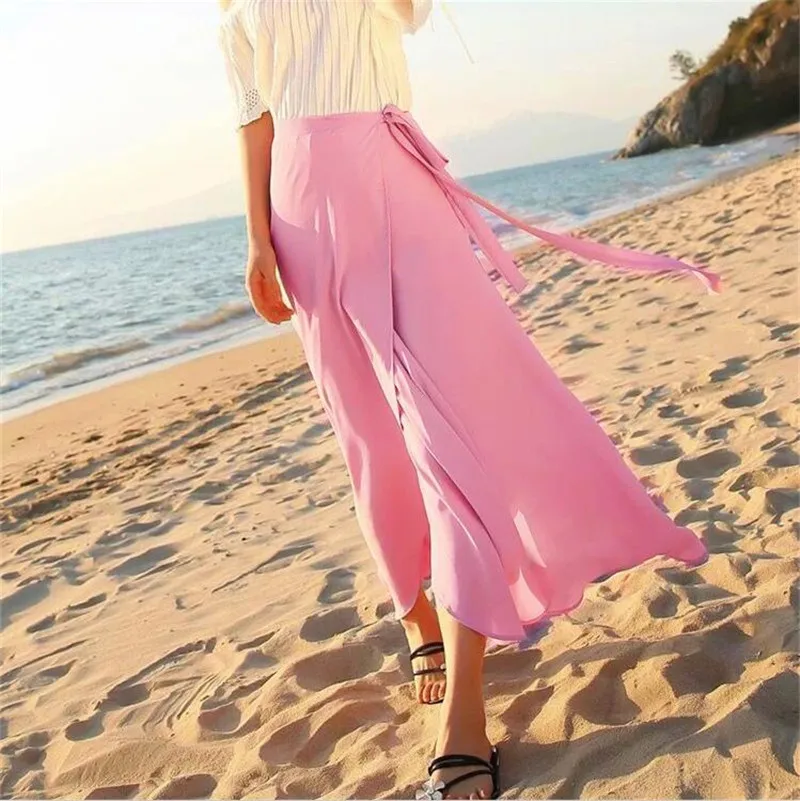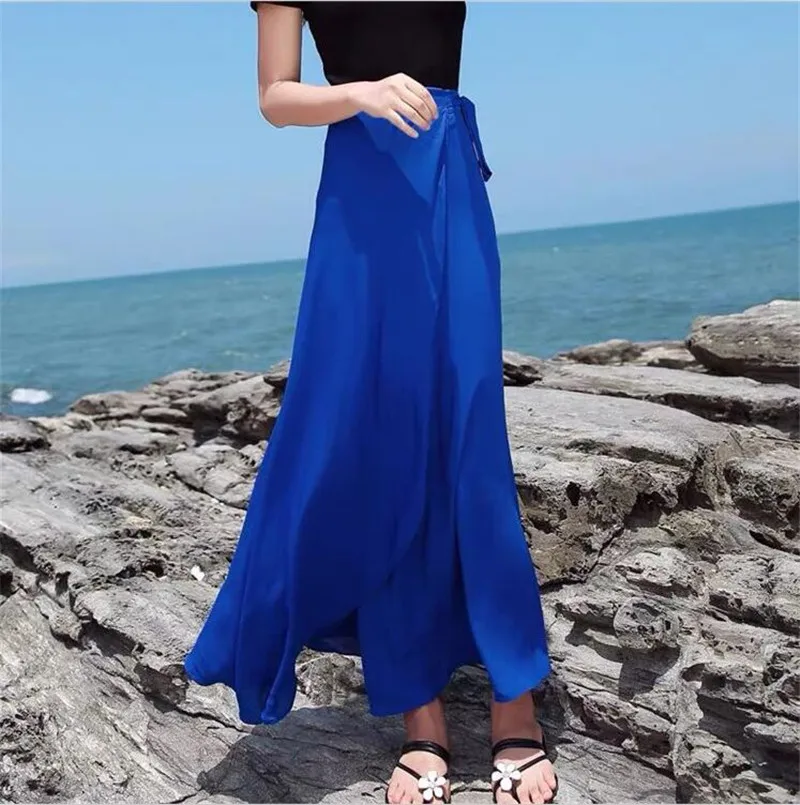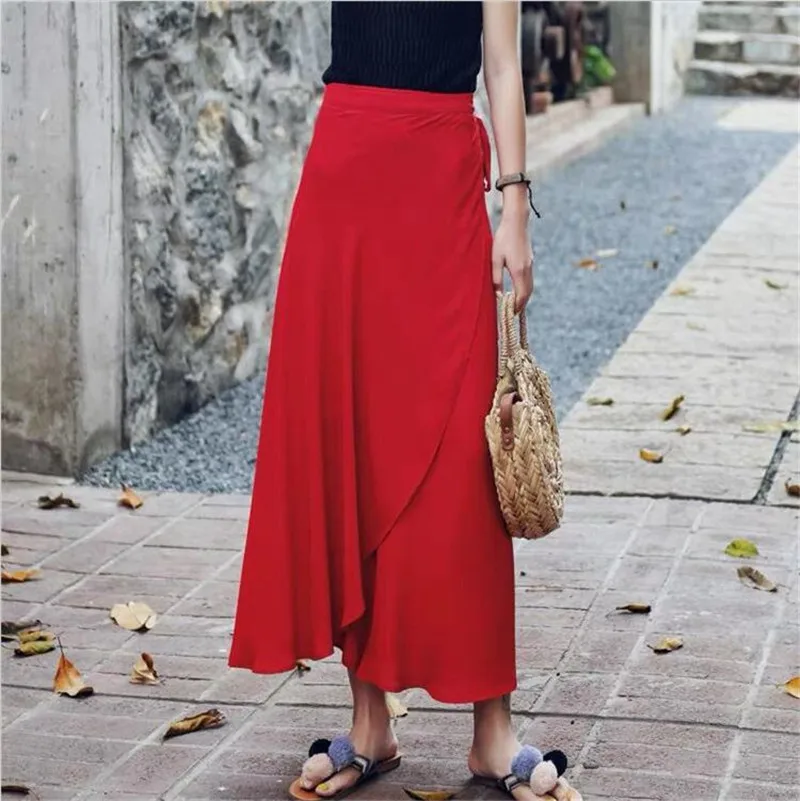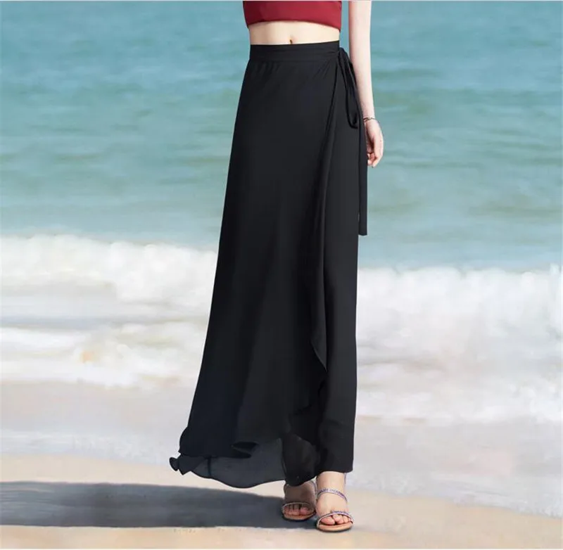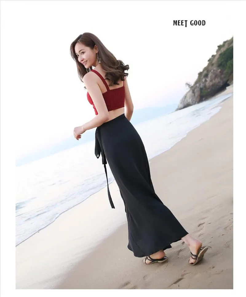 2022 женские пляжные длинные юбки, летние сексуальные юбки с регулируемой талией для девушек, цельная юбка с разрезом-