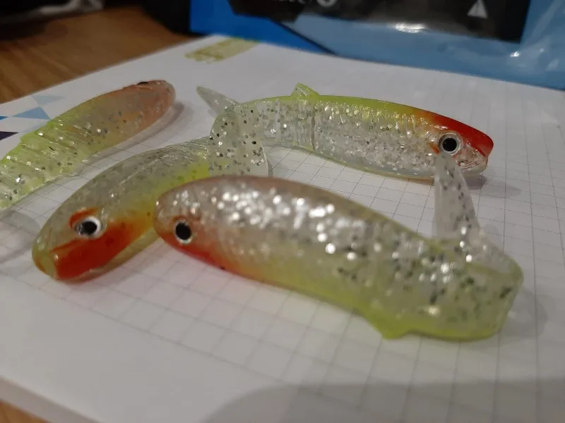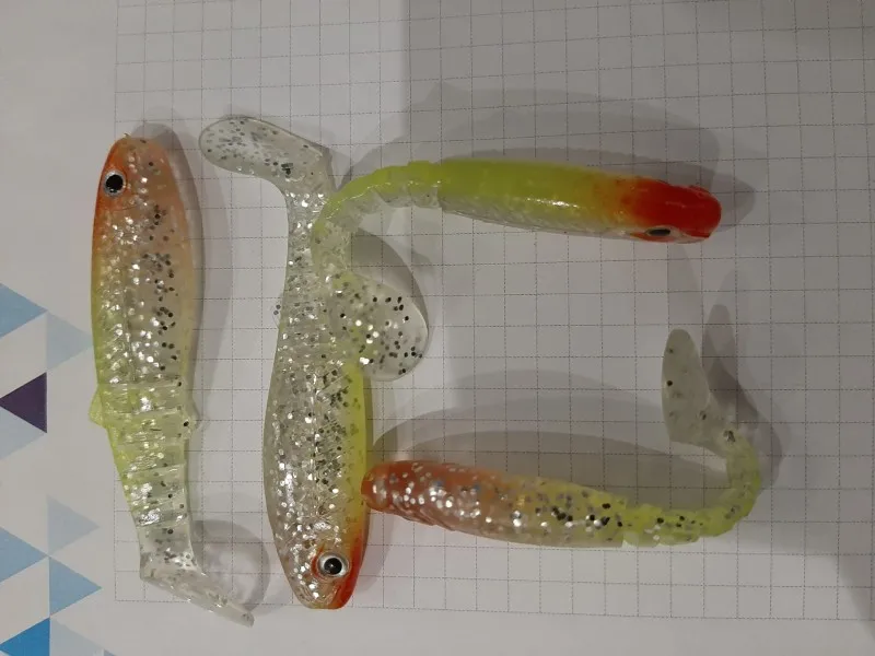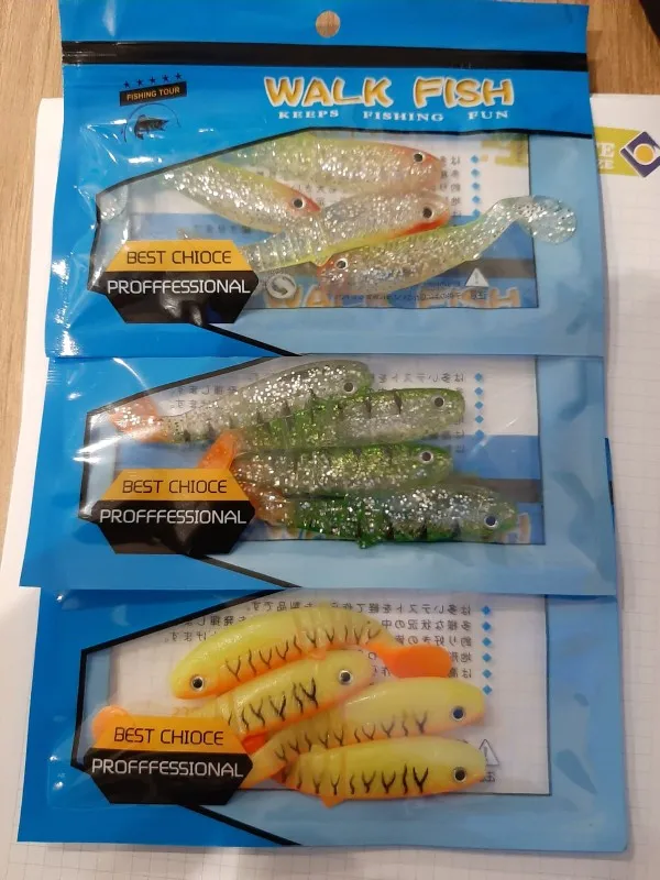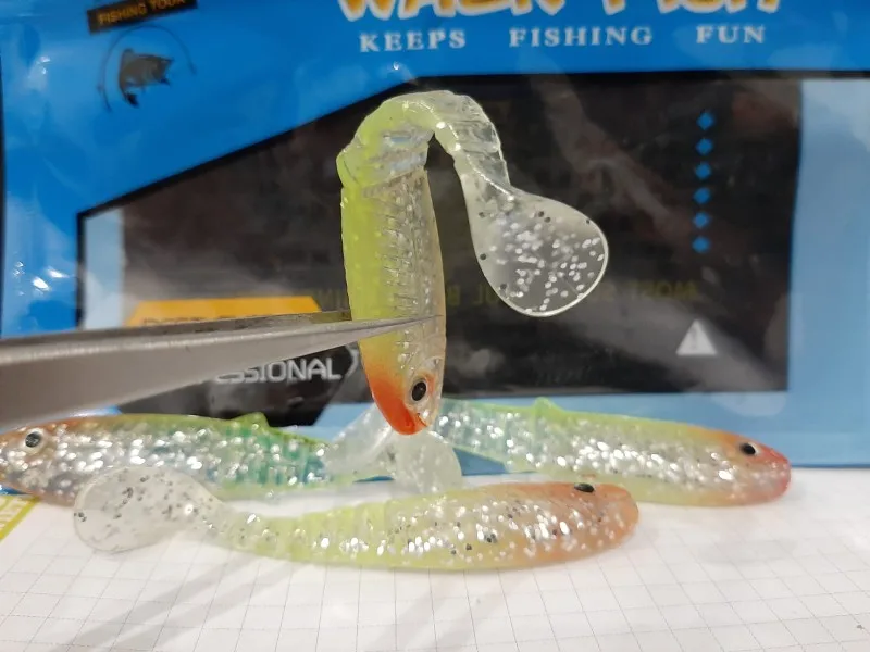 WALK FISH искусственные мягкие приманки, 4 шт.лот, 80 мм, 5,7 г, приманки для рыбной ловли, силиконовая приманка, воблеры с Т-образным хвостом