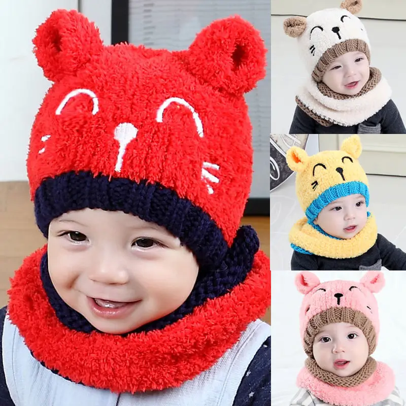 Теплая Зимняя шерстяная Шапка-бини для маленьких мальчиков и девочек, вязаная крючком Шапка-бини, милая мультяшная шапка