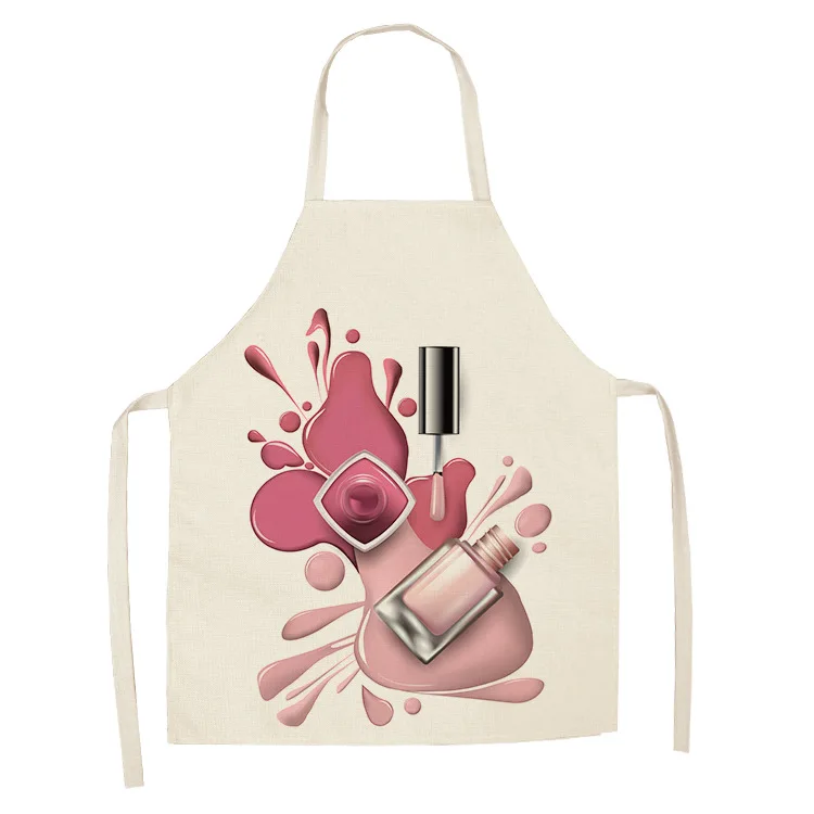 Льняные Кухня фартук розовый лак для ногтей тема печати Кухня фартуки унисекс ужин вечерние Пособия по кулинарии нагрудник Смешные передник для очистки фартук