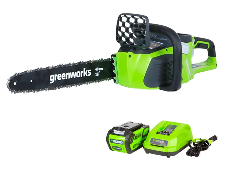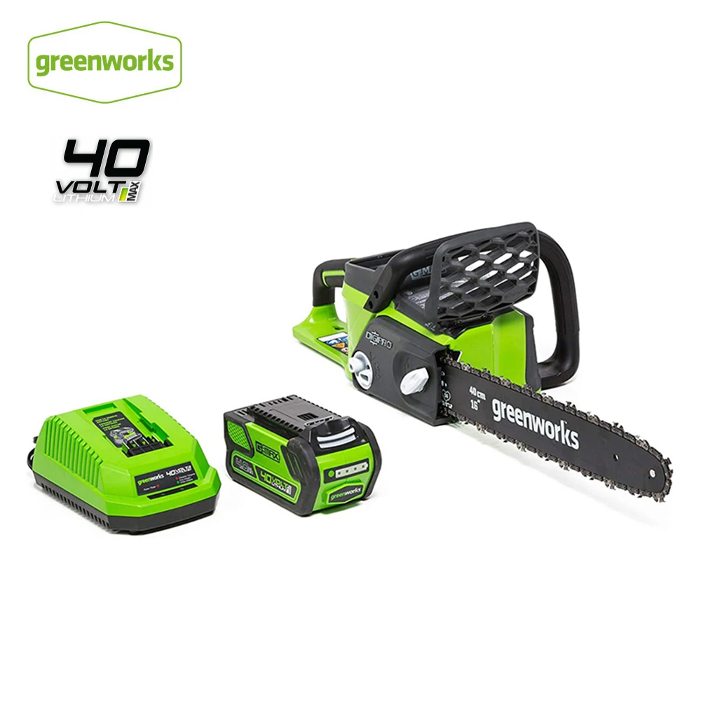 Greenworks 40v 4.0Ah Беспроводная цепная пила бесщеточный двигатель 20312 бензопила с 4.0ah батареей и зарядным устройством бесплатный возврат перчатки лопата ножницы керхер home garden