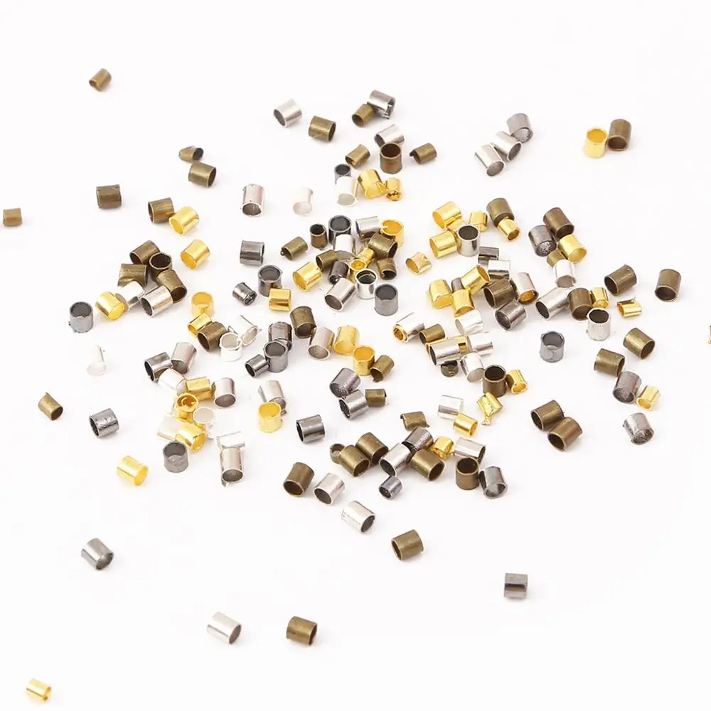 500 шт.лот, 1,52 мм, золотистыеСеребристые медные трубчатые обжимные концевые бусины-пробки, коннекторы для изготовления ювелирных украшений, фурнитура для поделок