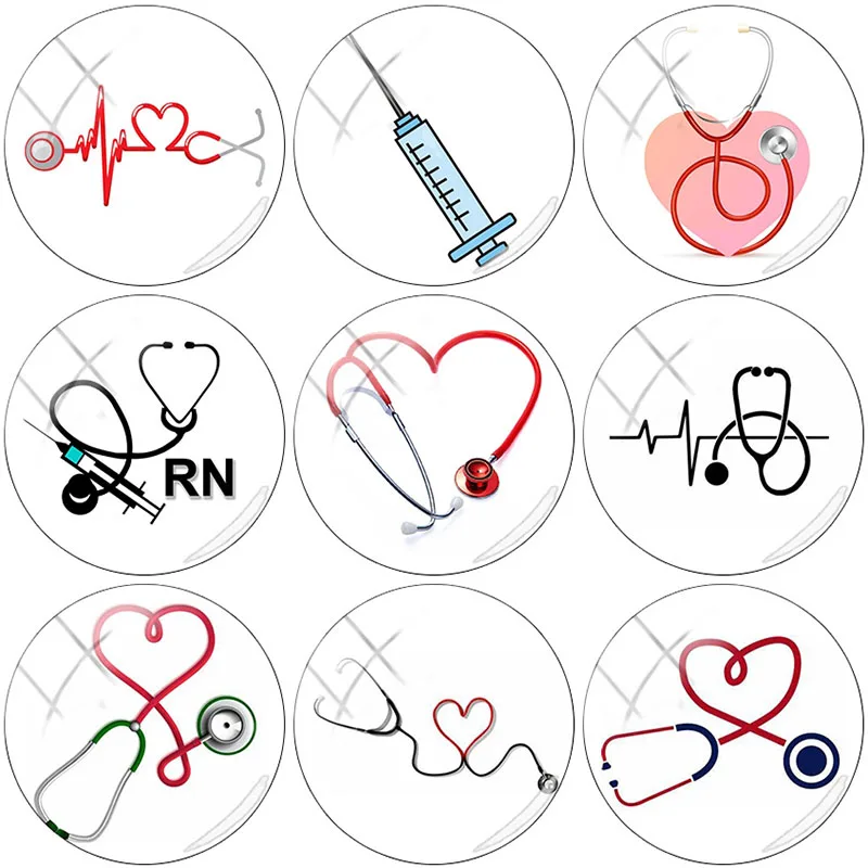 TitleNurse Syringe Stethoscope Round Glass Cabochon Jewelry Findings