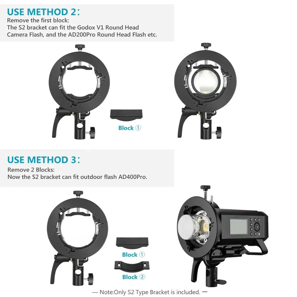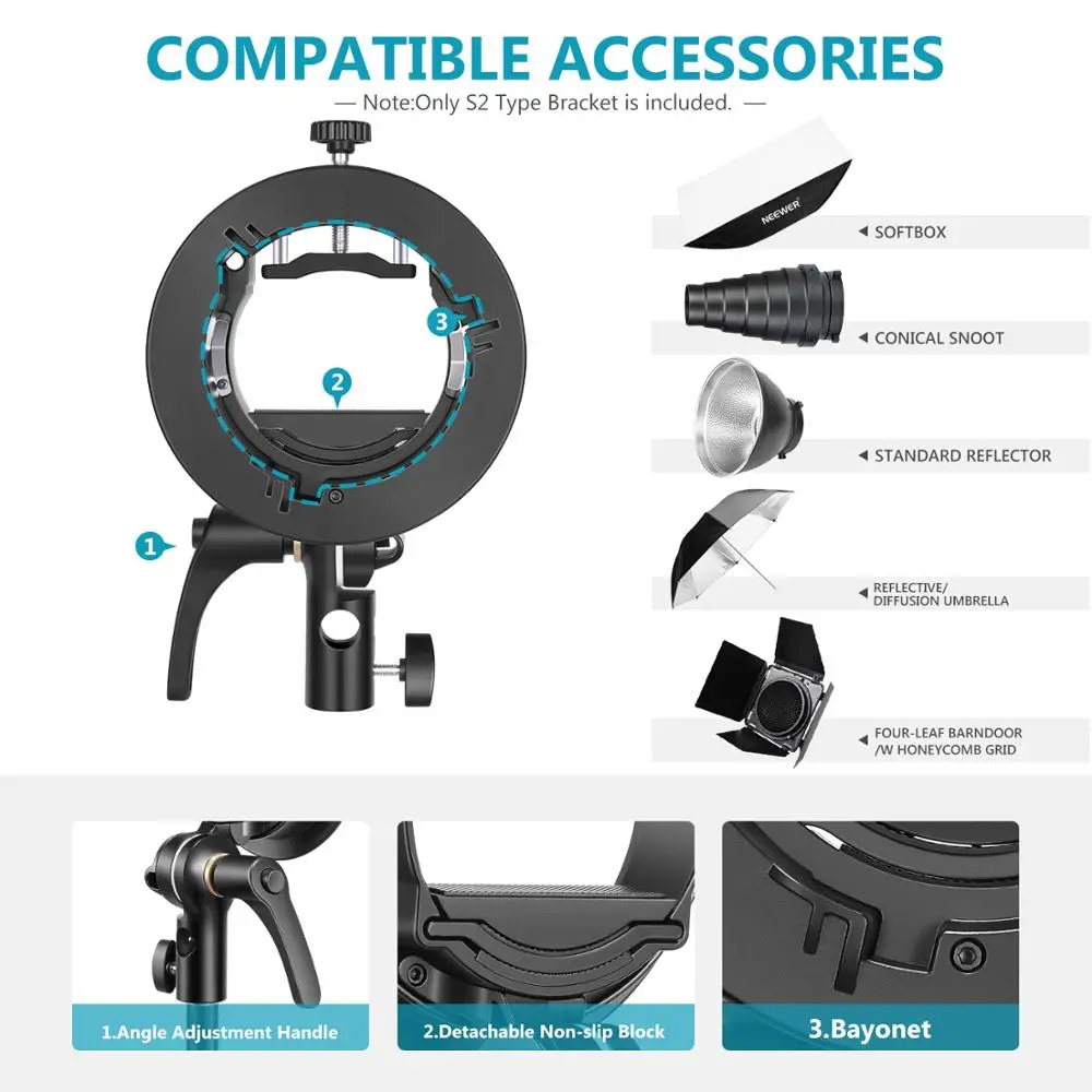 Держатель вспышки Neewer S2 Speedlite S-type с креплением Bowens, совместимый с Neewer 750II NW670 Godox V1 AD200Pro AD400Pro AD200