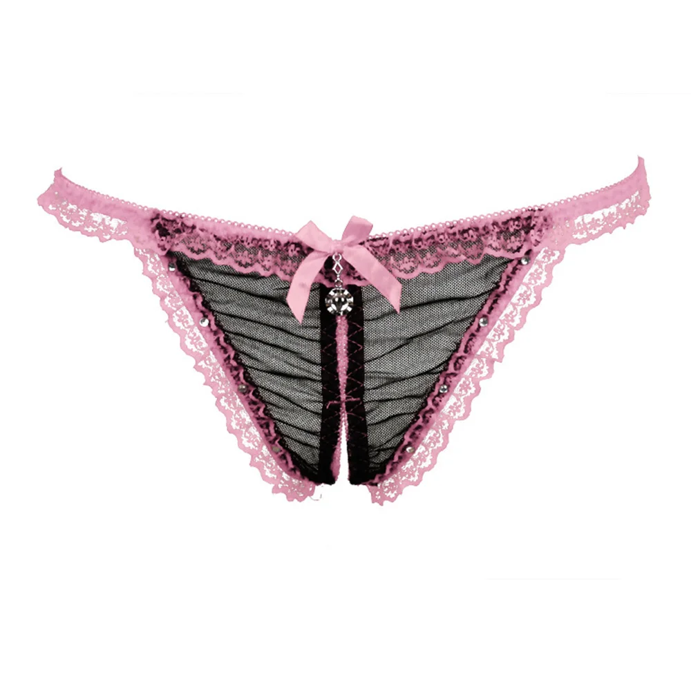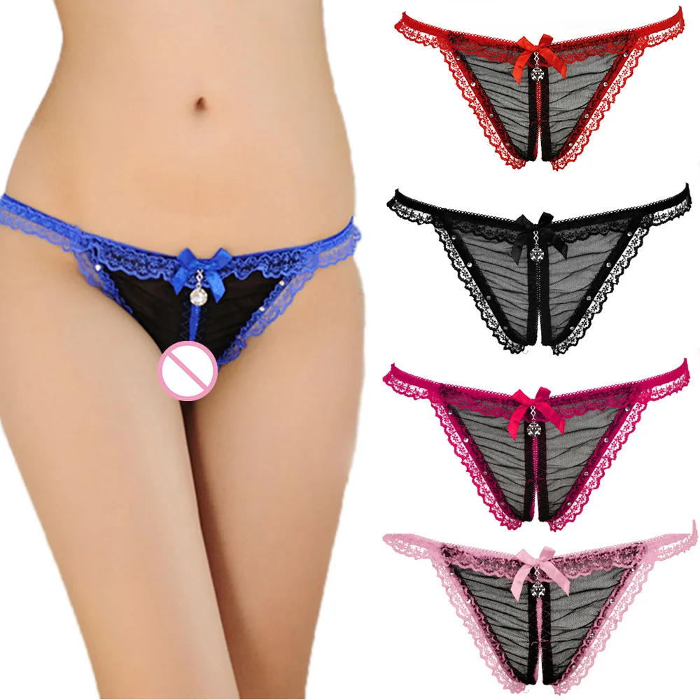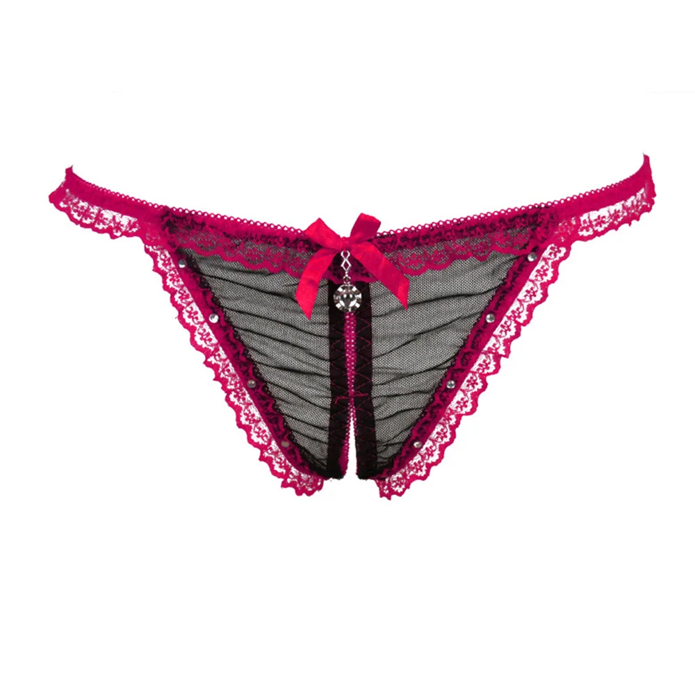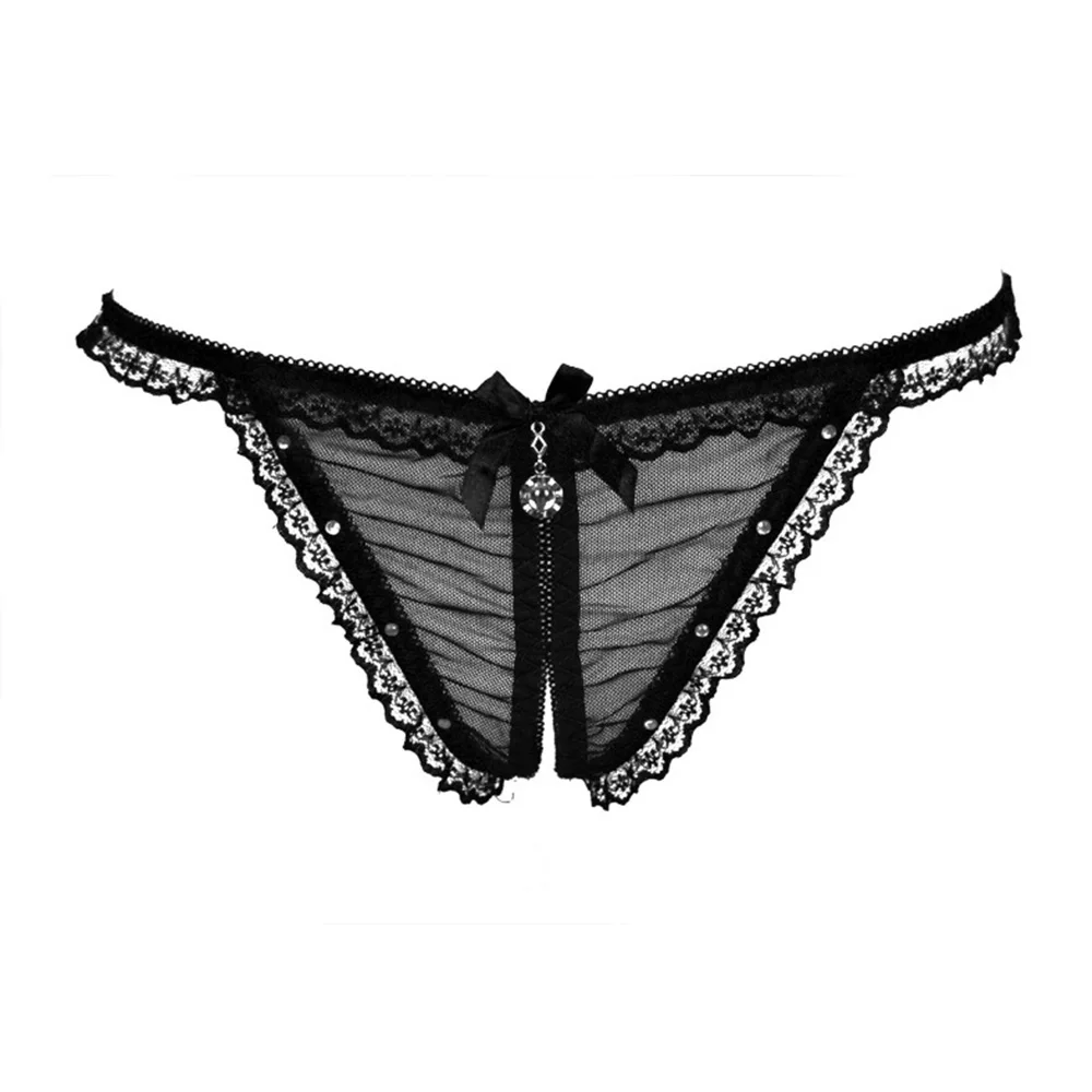 Женские сексуальные трусики, прозрачное кружевное украшение с подвеской, G-стринги с открытой промежностью, экзотическое нижнее белье без промежности, сексуальное белье, стринги с низкой посадкой
