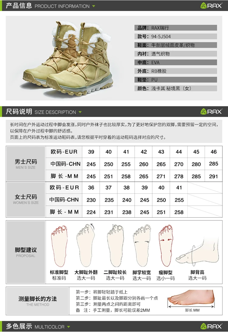 Мужские походные ботинки RAX, Нескользящие ботинки, Классические походные ботинки средней высоты с плюшевой подкладкой для профессиональных мужчин