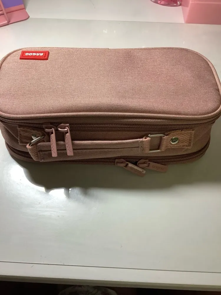 Этот случай довольно хороший, он очень красивый и просторный, я даю ему 5 звезд за скорость и опыт. Он больше, чем я ожидал, и сейчас он занимает очень мало времени, потому что он только что прибыл, но после того, как я добавил цвета и другие, он выглядит очень красиво. Самое лучшее, что у него есть ручка, и вы можете взять ее везде. Все коробки, которые у меня были, сломались от молнии, и это здорово, так как у него есть две молнии. В целом это красиво. Что мне не очень нравится, так это то, что у него красная отметка, так как она не сильно прилипает к серому, но это не имеет значения, потому что я могу повернуть ее.