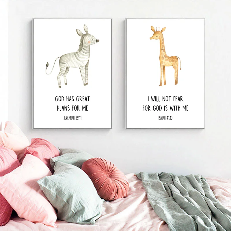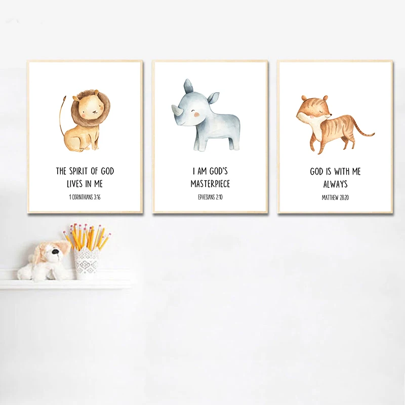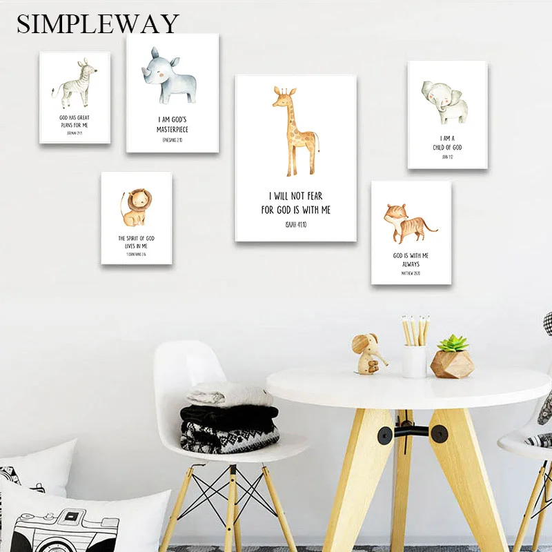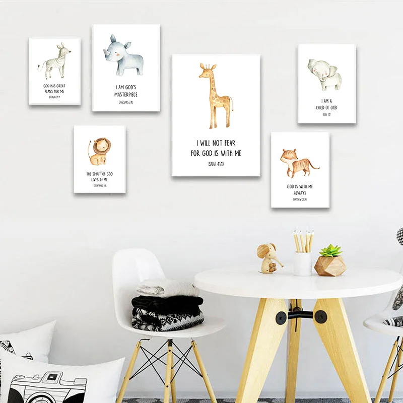Kawaii детские животных постер для детской комнаты с изображением л...