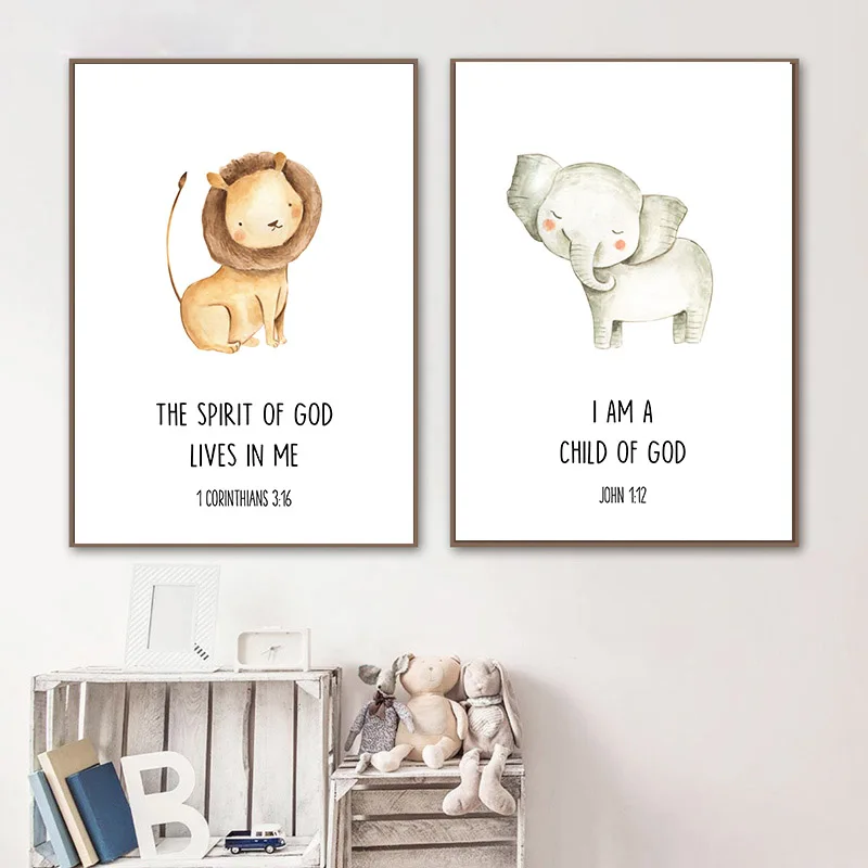 Детская Настенная картина для детской комнаты, Постер со слоном и в...