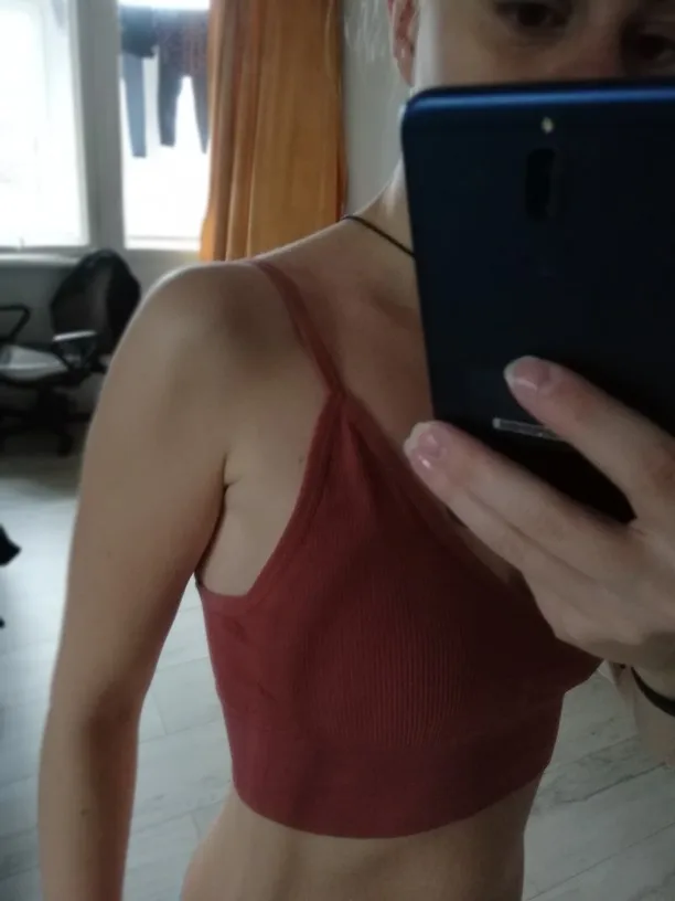 комфортный топ,лямки регулируются,рандомный цвет пришел оранжевый(кирпичный). Спасибо!