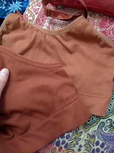 Очень быстрая доставка, за это продавцу огромное спасибо. Брала рандомный цвет, продавец положил красно -коричневый (цвет красного кирпича ). Качество неплохое, ткань мягкая, запах присутсвует, но очень слабый. С учетом купона на 11.11 этот лифчик достался мне всего за 57 рублей! За такую цену просто супер!