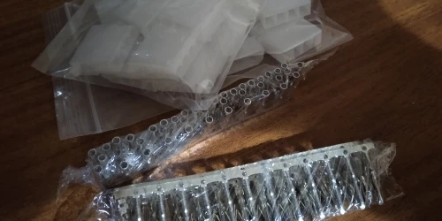 Быстро доставили в сборной посылке. Качество хорошее. Только вместо разъемов 10 "мама" и 10 "папа" прислали 18 "мама". Продавец ответил, что может прислать недостающие, если сделаю еще один заказ из его магазина. Но мне ничего не нужно было больше, открыл спор, чтобы вернули половину стоимости, требование удовлетворили. Оценку не снижаю, хоть и придется теперь где-то еще искать отдельно "папы".