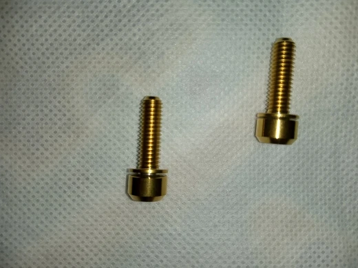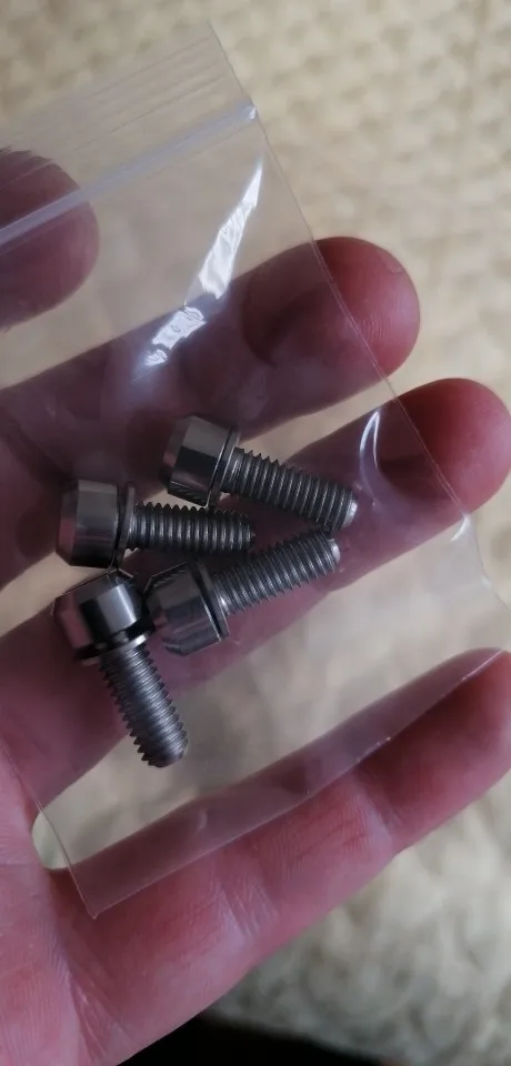 Очень хорошие болты, я заказал 1, забыл, что у меня было, а затем заказал еще 1, так что теперь у меня есть 2, но поскольку у вас никогда не может быть слишком много титановых болтов, это не имеет значения. Цвета очень славный и поэтому подвергать механической обработке головы. Очень умно. 5⭐
