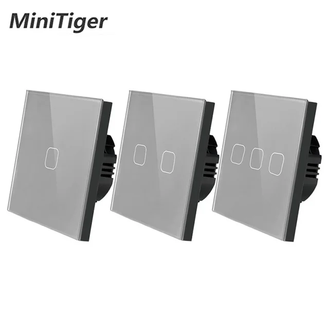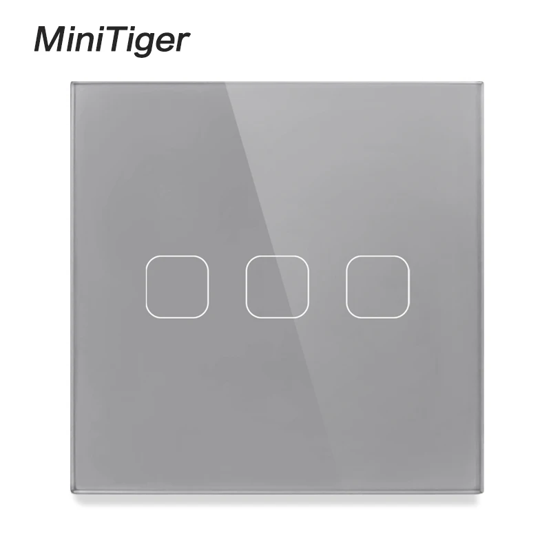 Сенсорный переключатель Minitiger, стандарт ЕСВеликобритании, 123 кнопок, сенсорный переключатель, панель из серого хрусталя, сенсорный переключатель света, только Сенсорная функция