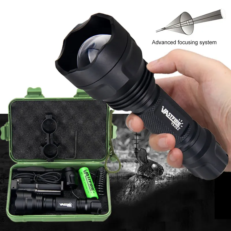 1x IR 850 фонарь 1 аккумулятор 18650 1x зарядное устройство 1x крепление для прицела 1x Дистанционный переключатель давления 1x зеленая коробка