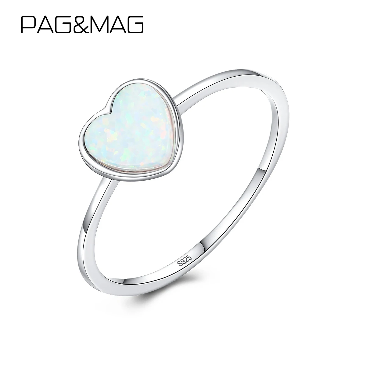 Женское Обручальное Кольцо PAG MAG, кольцо из стерлингового серебра 925 пробы с разноцветным сердцем и огненным опалом, очаровательное ювелирное изделие