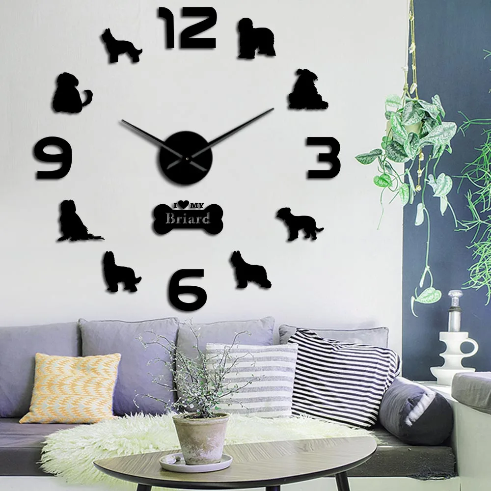 Briard Dog DIY 3D акриловые настенные часы Бергера де брие бесшумные зеркальные часы Бергера бриард бесшумные самоклеящиеся обои