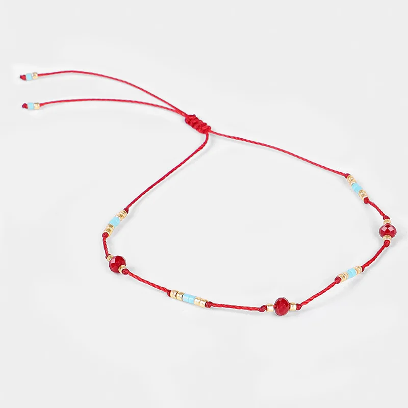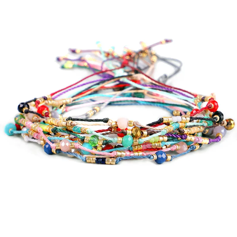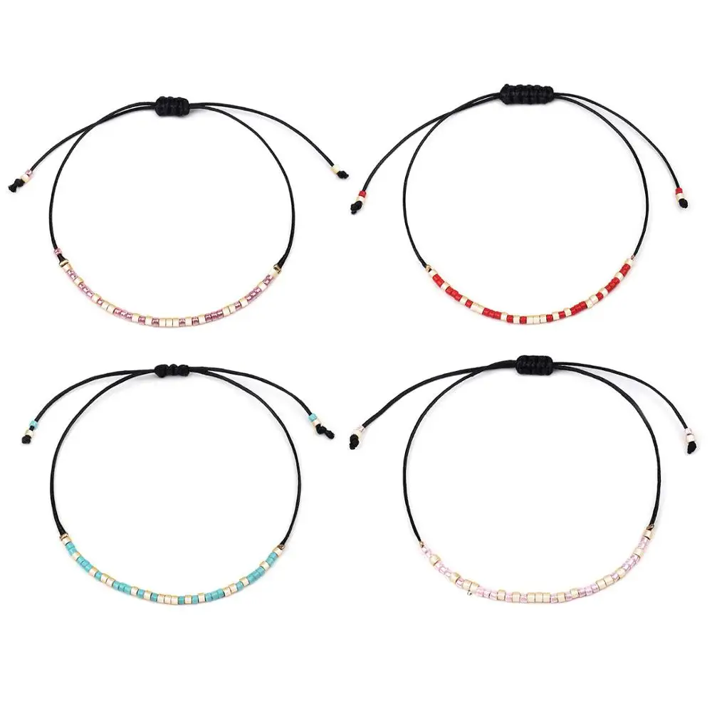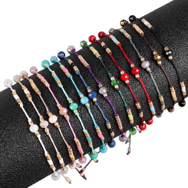 Браслет на ногу Bobo ручной работы для мужчин и женщин, украшение из японского стекла Миюки с гранями и блестящим кристаллом, тонкий разноцветный шнур ручной работы