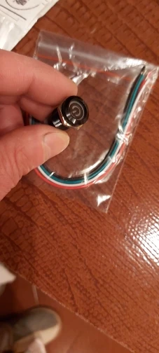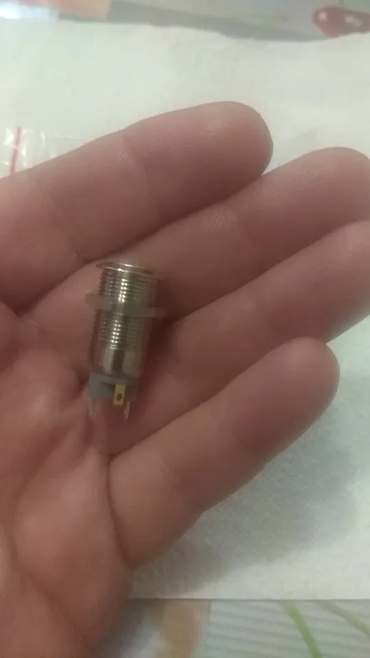 Не посмотрел размеры, думал кнопка будет в 2 раза больше. При пайке плавится пластик, выскочил ус. Внешний вид не такой идеальный как на фото от продавца. Кнопка работает - нажимается, светит