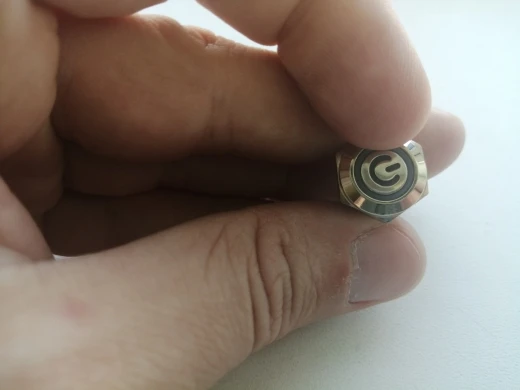 эта кнопочка потерялась по дороге. но ранее брал. миниатюрная! не всякий палец сможет нажать. подсветка отличная, общее качество на высоте. металл! с учётом размера - товар отличный!