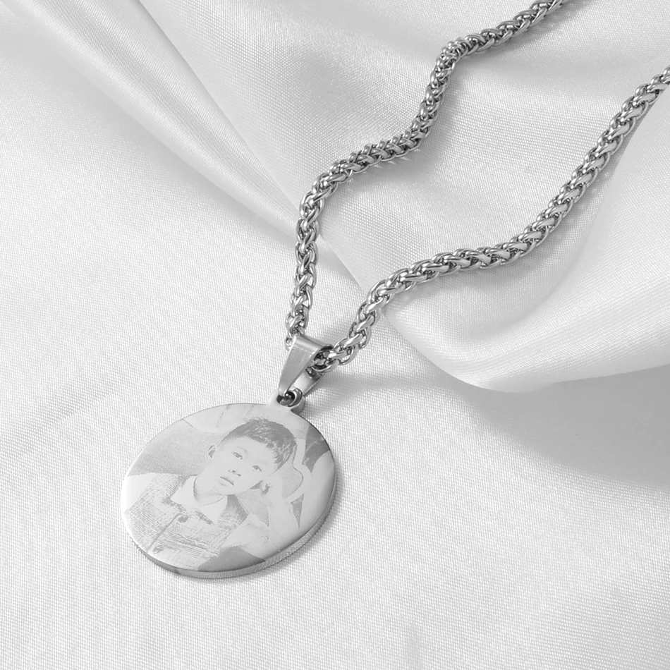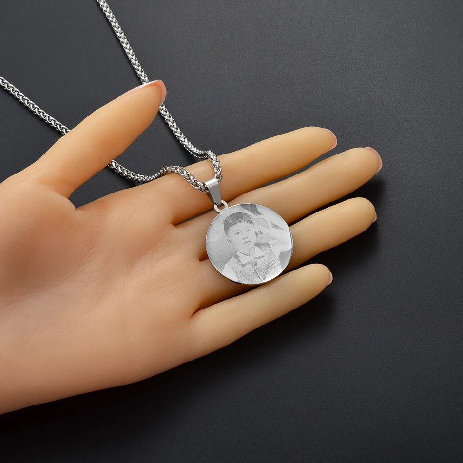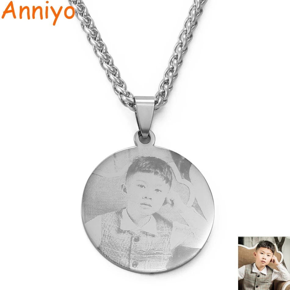 Ожерелье Anniyo с подвеской по индивидуальному заказу для мужчин и женщин, гравировка, портрет, день рождения, свадьба, персональное изображение #133721