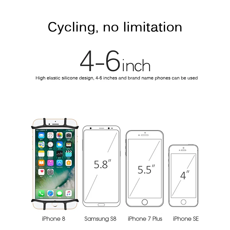 Регулируемый держатель для телефона, силиконовый держатель для телефона 4-6 дюймов на руль велосипеда, электроскутера, мотоцикла и т. д.