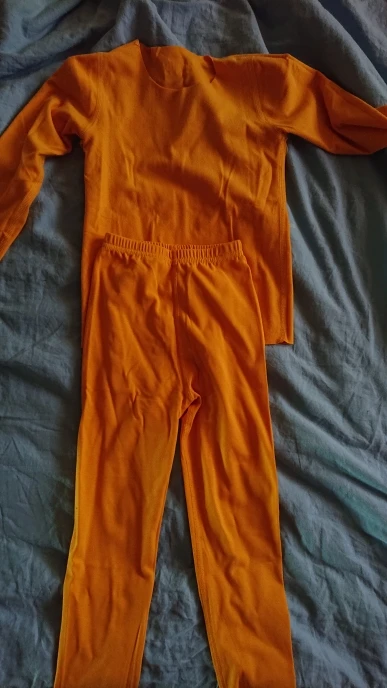 Прекрасная пижама. Все как на фото - горловина с необработанной кромкой, минимум швов, очень ярко и красиво. Хорошо прилегает к телу, можно под одежду или как пижамный комплект в детский сад использовать.