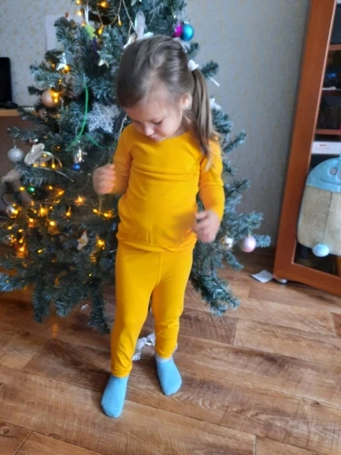 Очень симпатичный костюмчик. Покупался как поддева под комбез на холодную погоду. Сшито качественно, мягкий и приятный к телу. Размерной сетке соответствует. Состав: хлопок с синтетикой. Внутренний слой похож на тонкий начесик. После стирки не полинял, не деформировался. Доставка очень быстрая