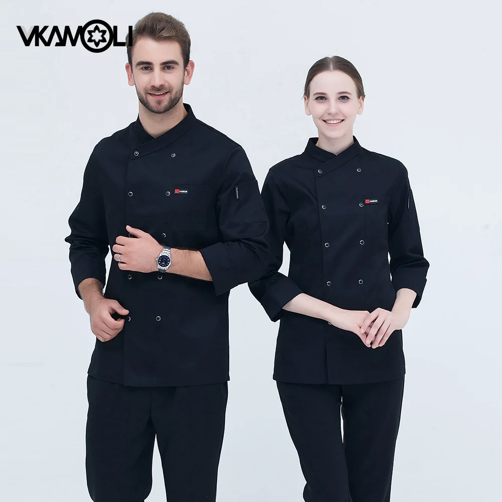 Высокое качество Черный с длинным рукавом мастер повара Рабочая форма ресторан отель барбекю кухня рабочая одежда еда сервис шеф-повара Топы