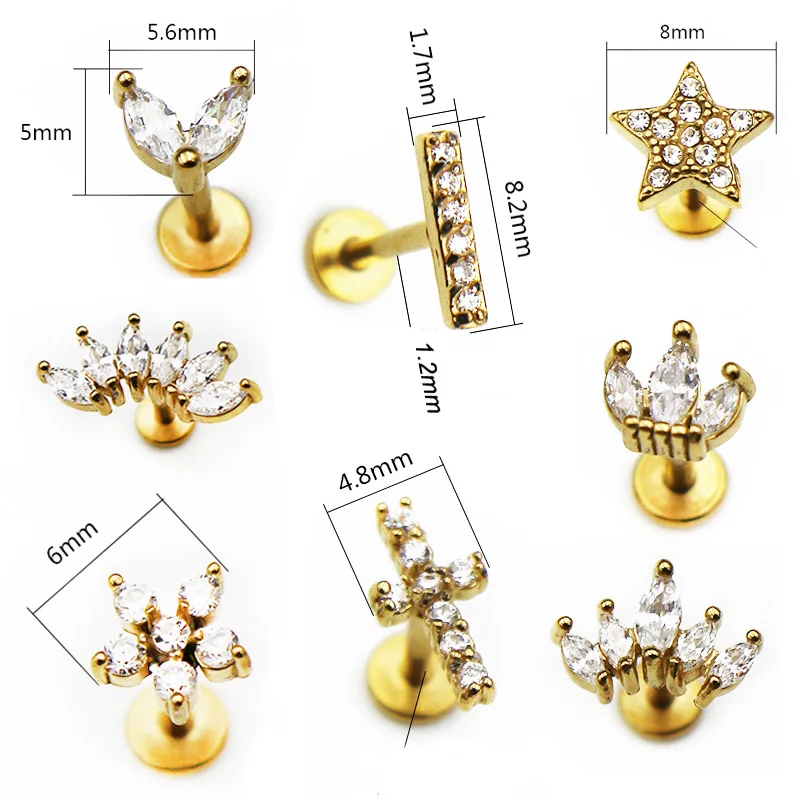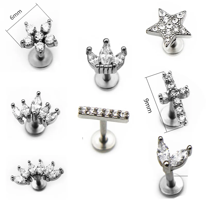 1 шт., серьги-гвоздики из 100% хирургической стали с цветком и звездой, 16 г, пирсинг губ, модные ювелирные украшения для женщин