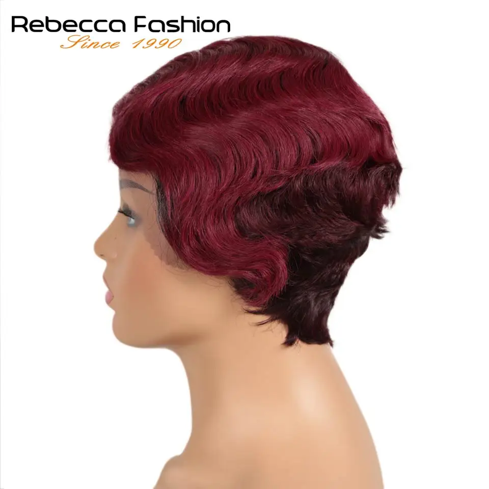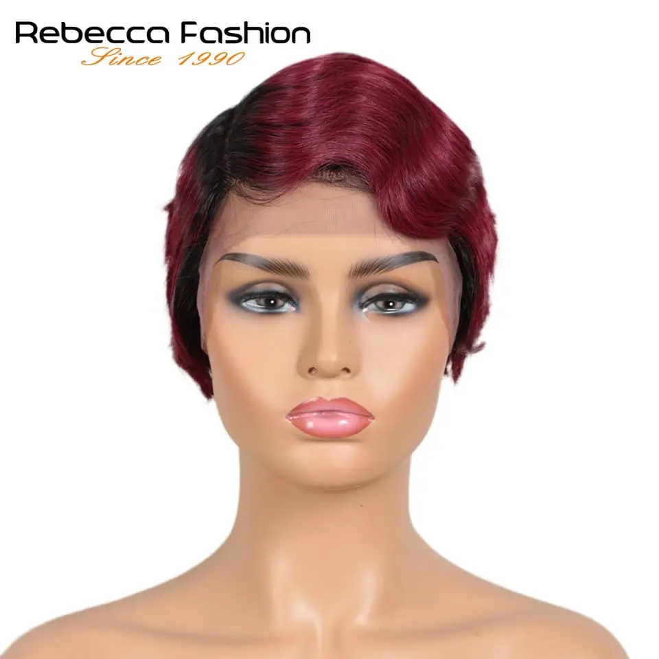Парики из натуральных волос Rebecca Pixie, парик фронта шнурка, короткие волнистые парики для женщин, Короткие парики в стиле ретро, парики из натуральных волос, Короткие парики боб