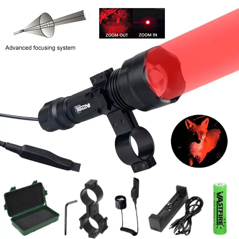 1x красный светильник вспышки светильник фонарь 1x18650 Батарея 1x Батарея Зарядное устройство 1x прицела 1x Дистанционный переключатель давления 1x Зеленый коробка