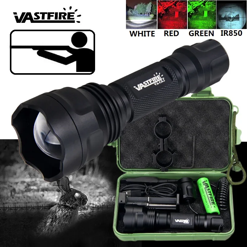 C8 зеленыйкрасныйбелыйIR 850 выберите тактический фонарь, водонепроницаемый портативный фонарь светильник, охотничий велосипедный лагерь с аккумулятором 18650