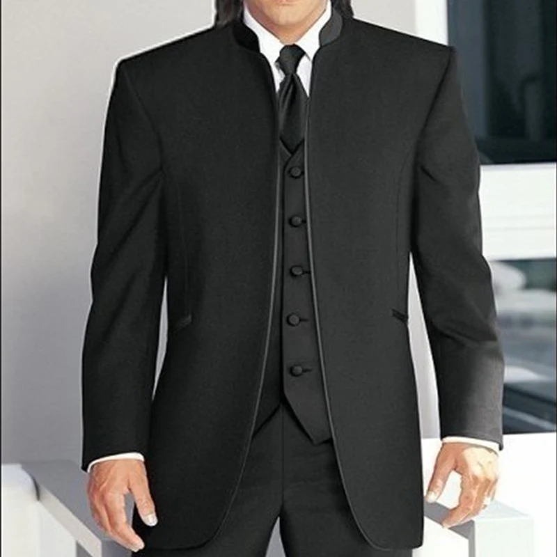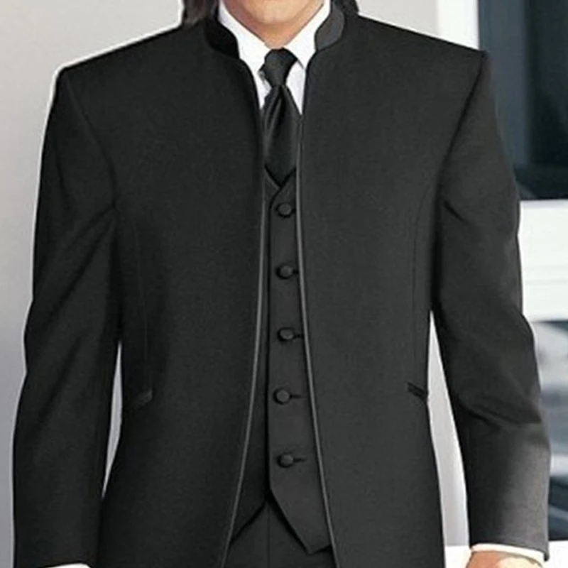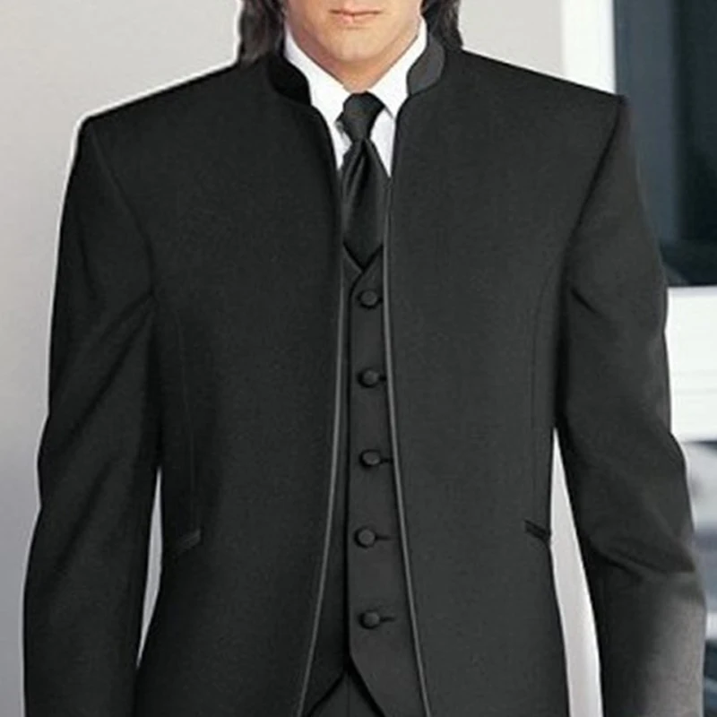 Смокинг для жениха на заказ, мужские костюмы для шафера, с воротником-стойкой, 3 предмета, мужской модный стильный комплект, куртка, жилет и брюки