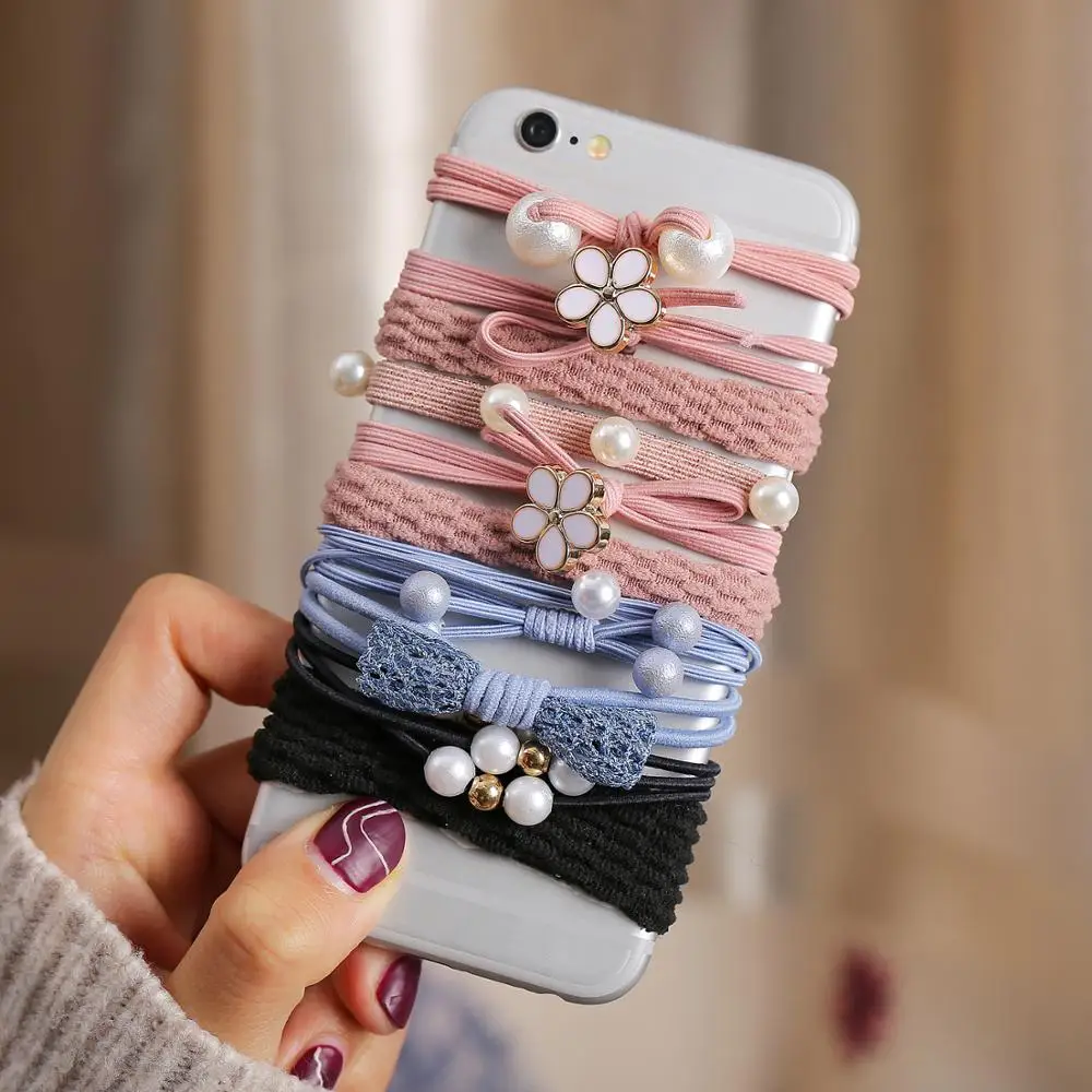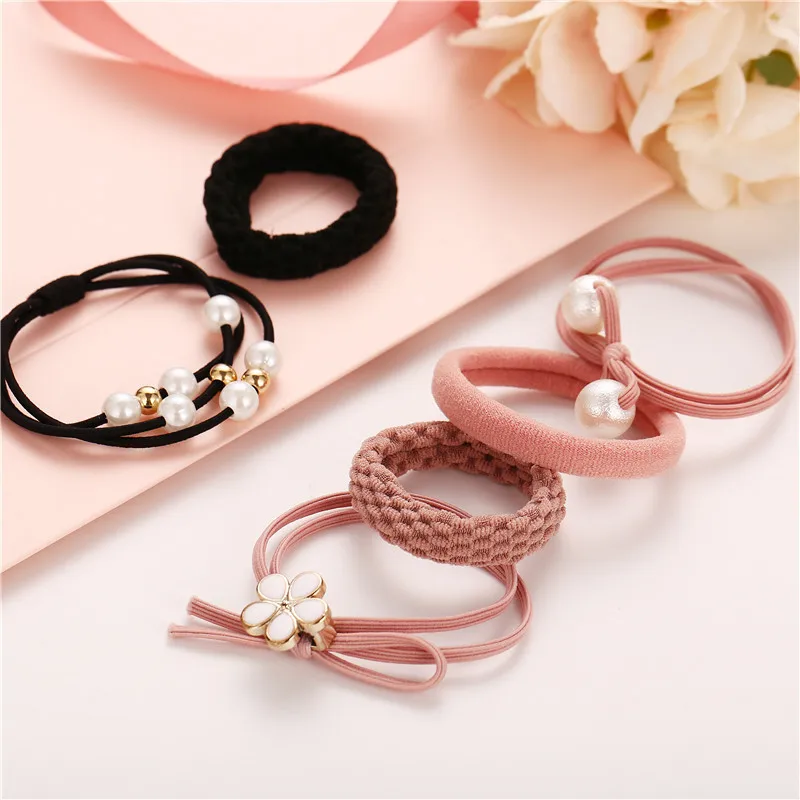 резинки для волос 2020 Модный головной убор для волос цветок жемчуг эластичные резинки для волос для женщин девочек новые аксессуары для волос из кружева новые повязки на голову с бантом Набор аксессуары для волос