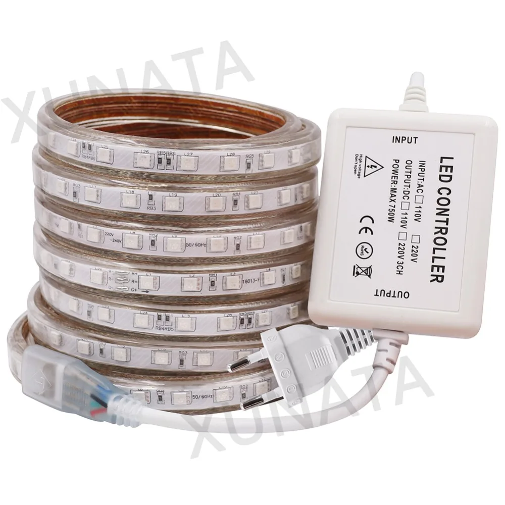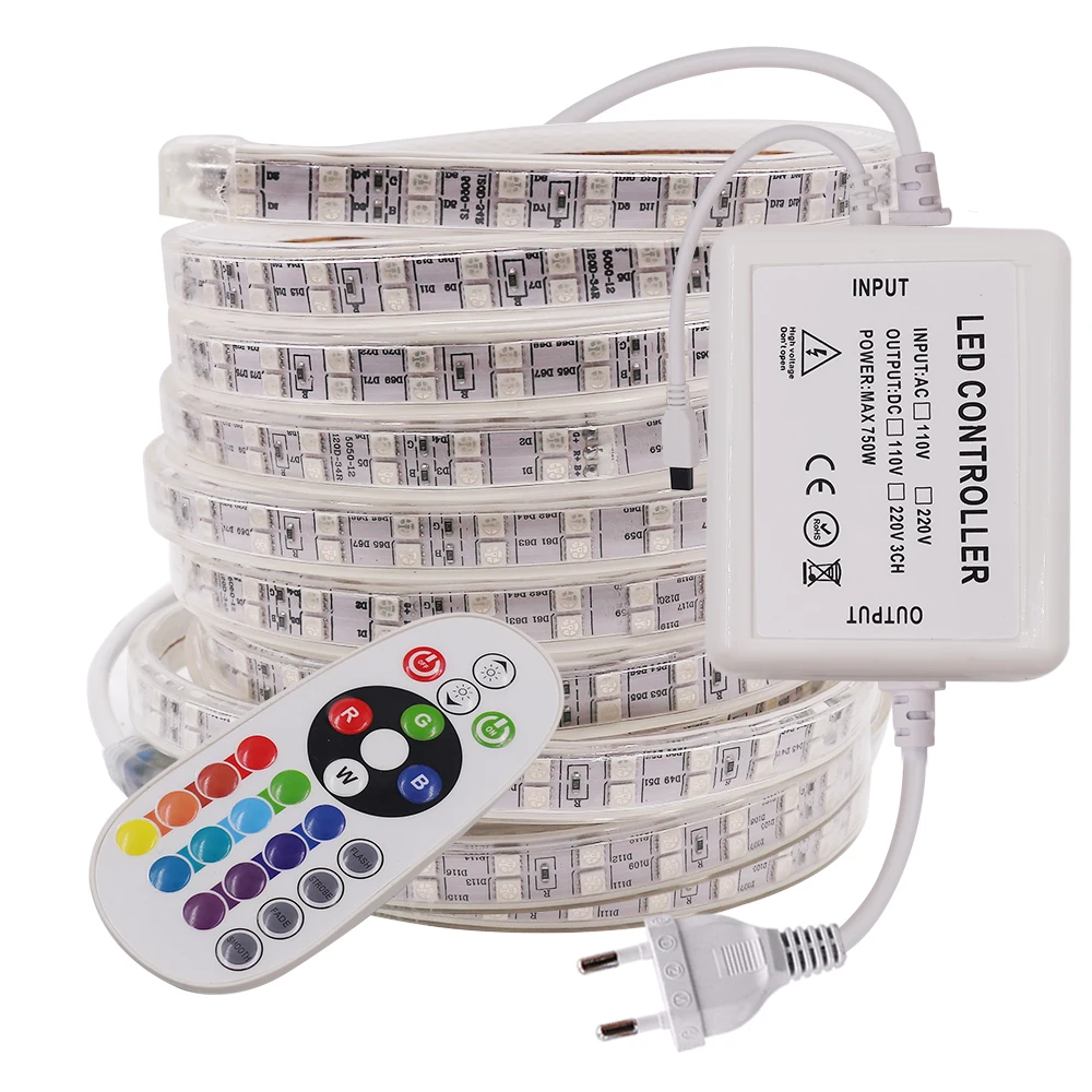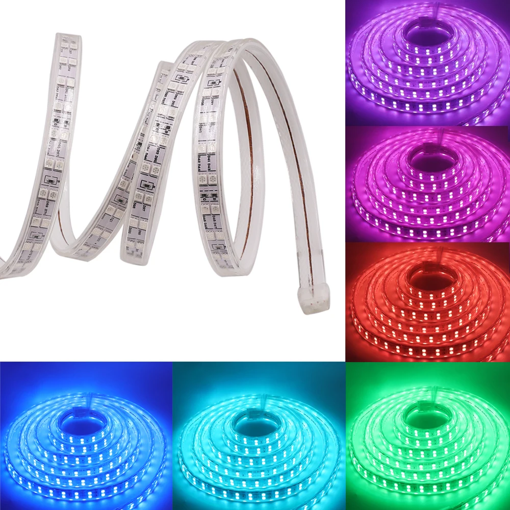 Суперъяркая светильник аемая Светодиодная лента 5050 RGB, гибкая лампа-полоска для украшения дома, 220 светодиодов, в