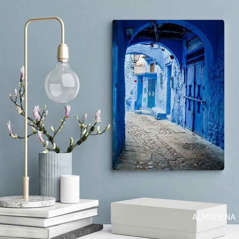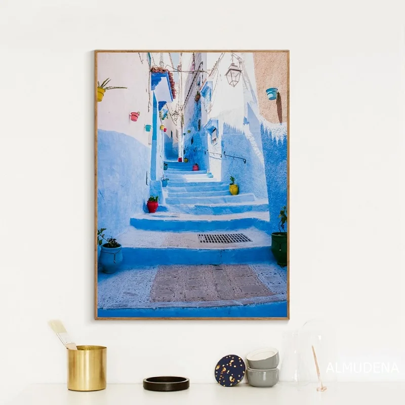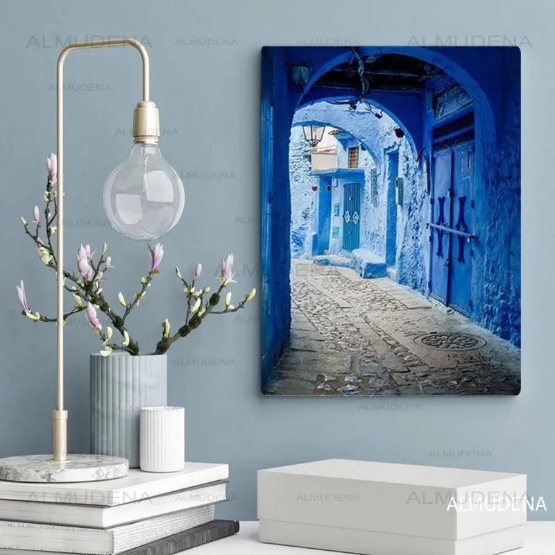 Постеры и принты для путешествий с украшением из Марокко, голубой архитектуры старого города, изящная Художественная печать, Картина на холсте, домашний декор