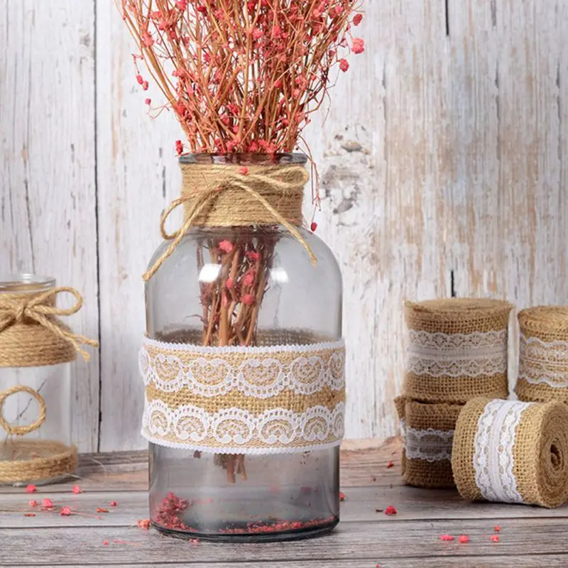 Джутовый рулон для декора, 2 м, 2,5-5 см, лента из натуральной джутовой мешковины, винтажная деревенская свадьба, лента из мешковины с кружевом