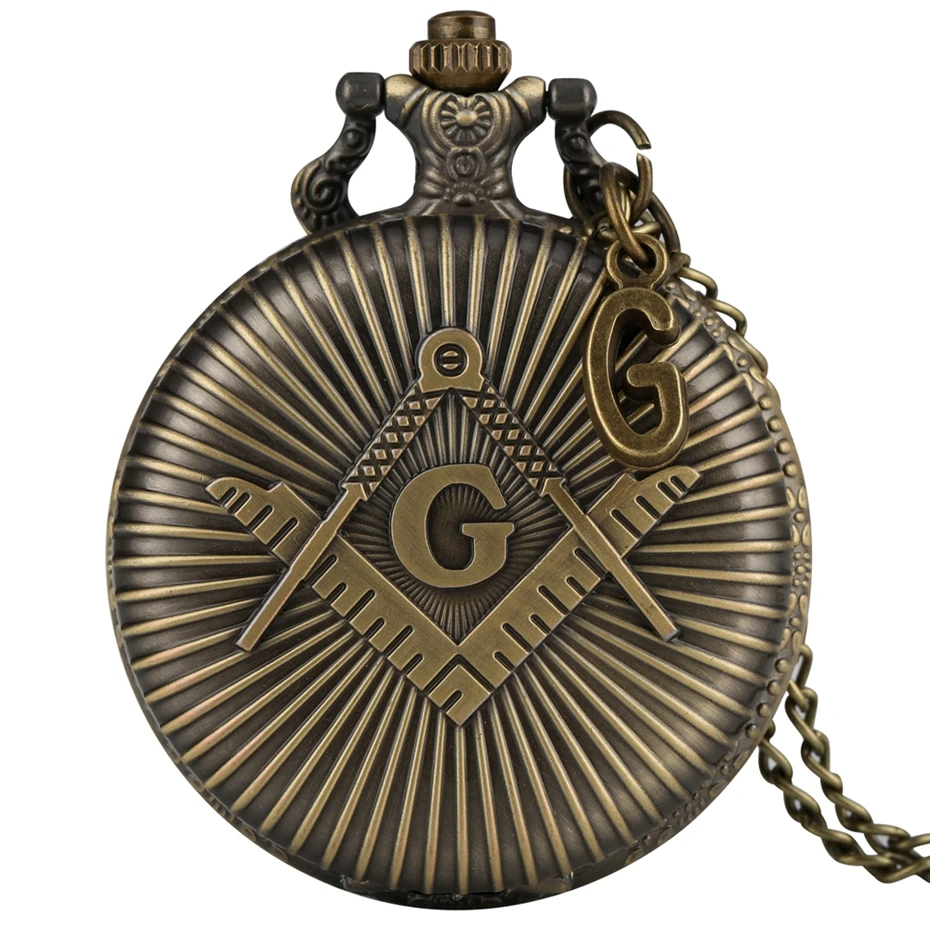 Панк масонство масонский дизайн Античная бронза кварцевые часы брелок кулон масонские карманные часы цепочка ожерелье с G аксессуар