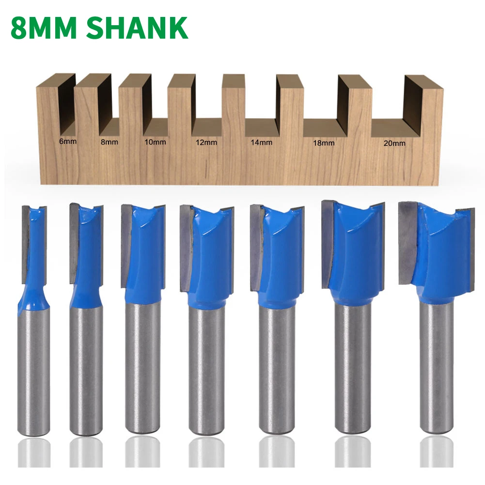 1 шт. 8 мм хвостовик Фрезерный резак резьба по дереву 681012141820 мм Диаметр резки прямой плотник деревообрабатывающий фрезерный Набор бит
