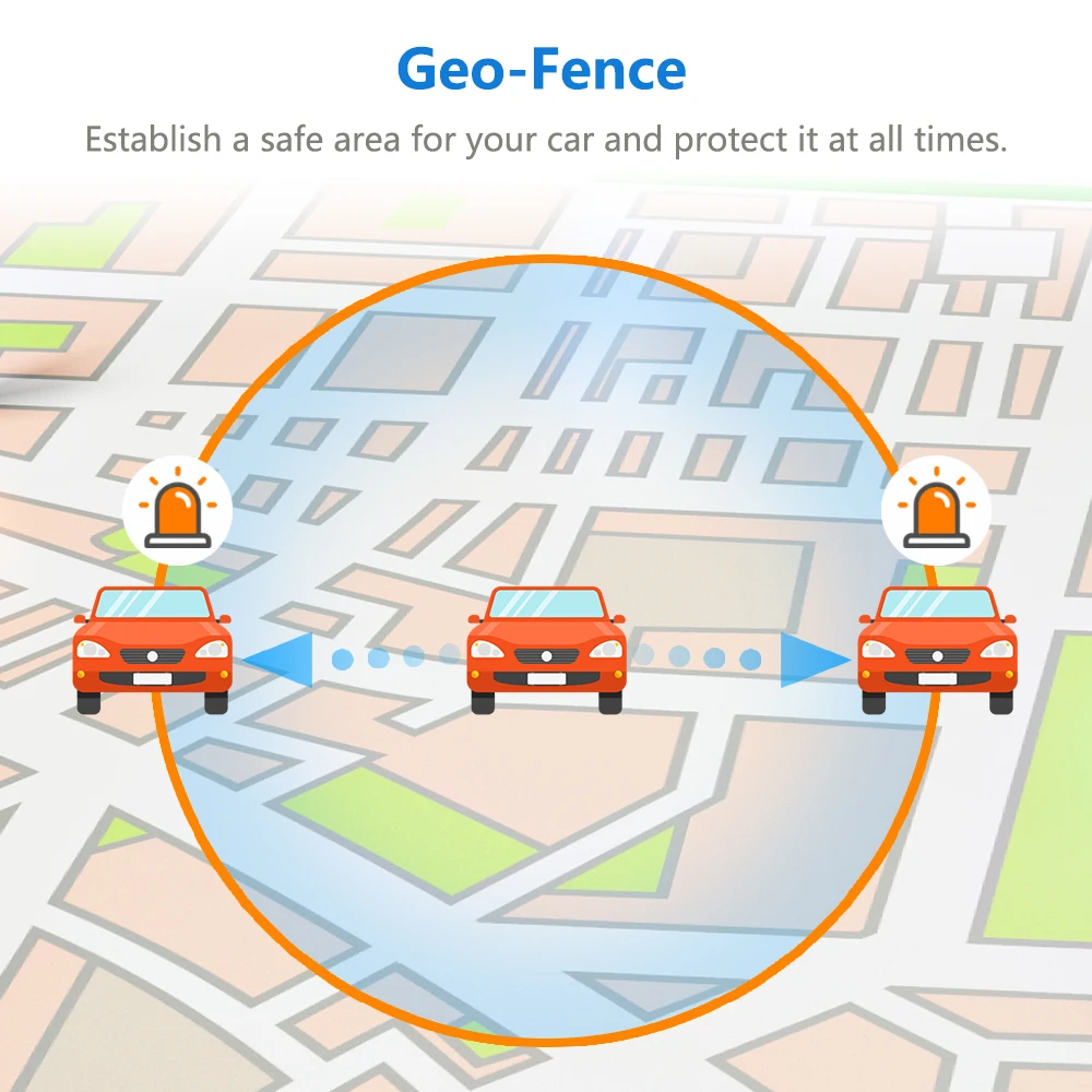 Пользователь может установить диапазон Геозоны на карте, и он будет подавать сигнал, когда устройство входит или выходит из заданного диапазона через приложение или SMS.