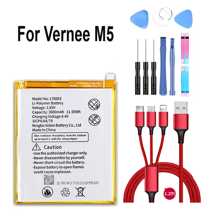 100% новый аккумулятор 178003 3000 мА ч для Vernee M5, USB-кабель, набор инструментов