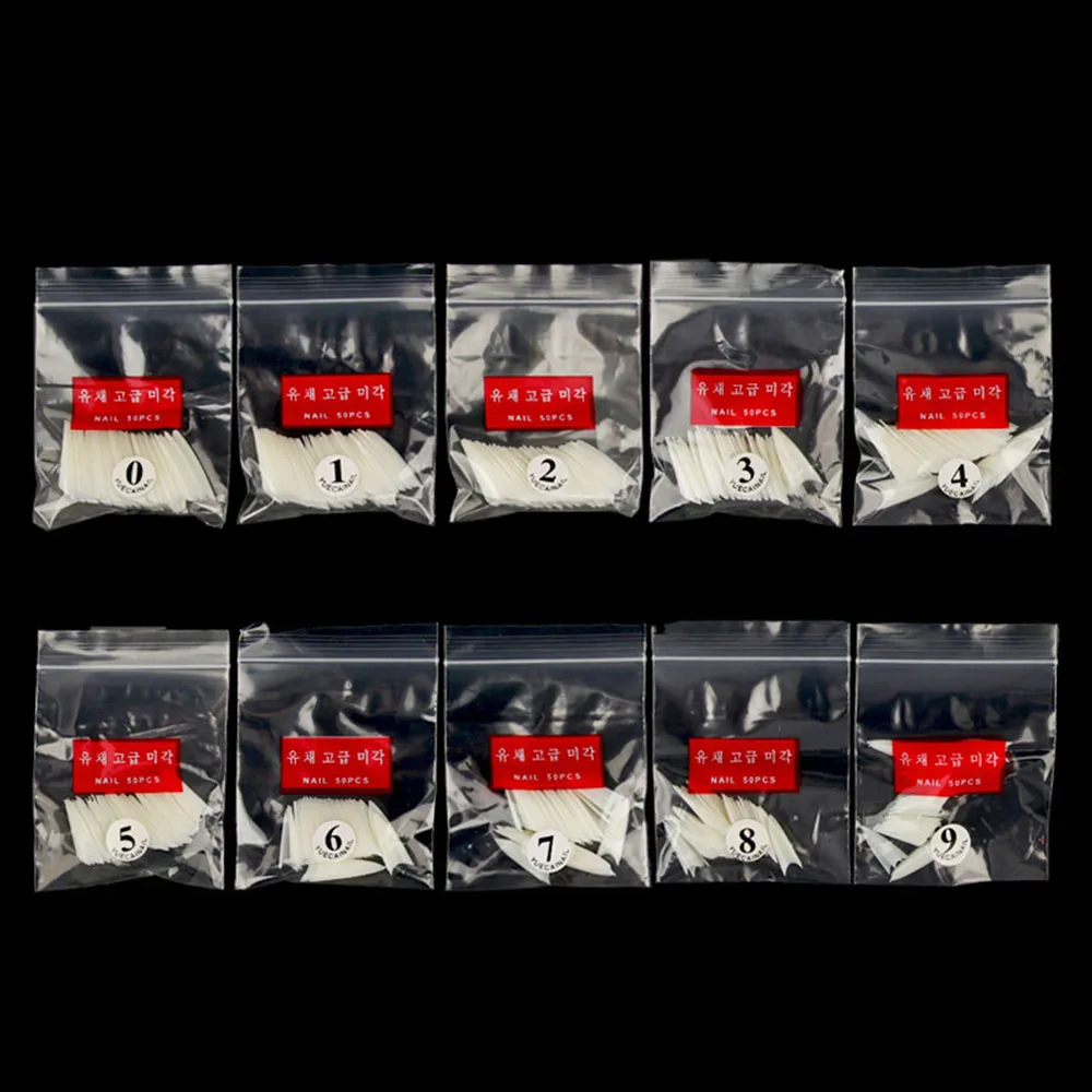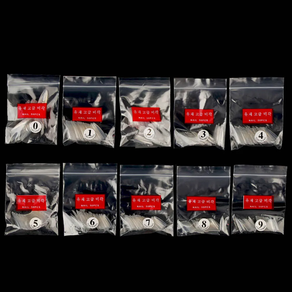 10 пакетов ложных гвоздей в 10 размерах (по 50 шт. каждого размера).