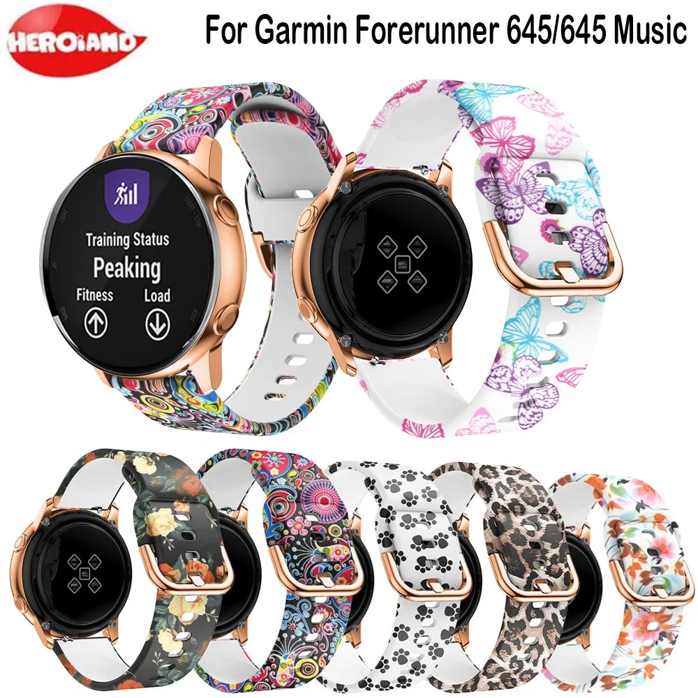 Силиконовый ремешок для наручных часов с принтом для Garmin Forerunner 645 245 245M, сменный Браслет для Garmin Vivoactive 3