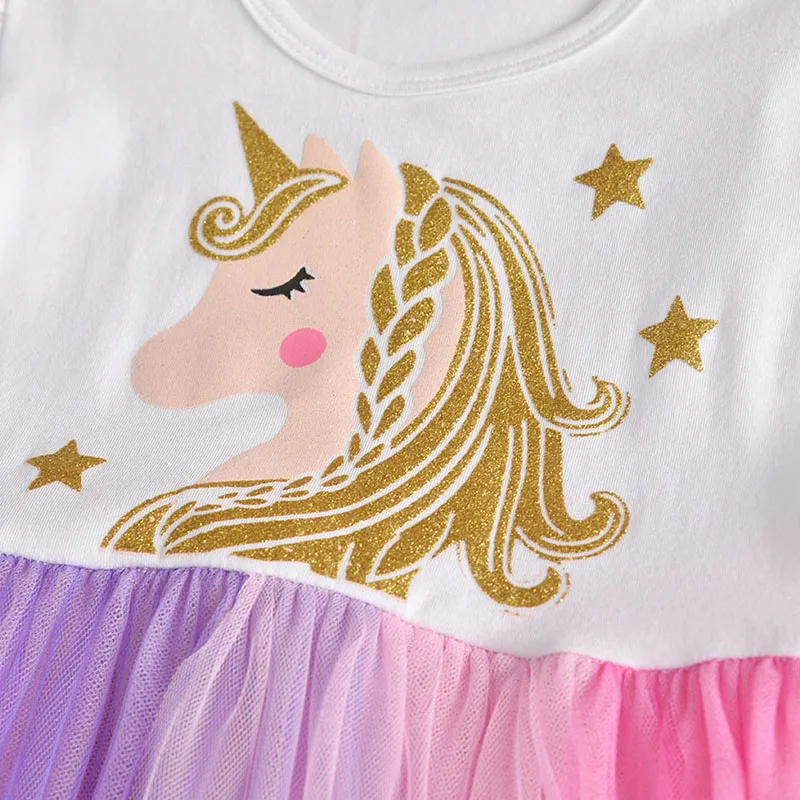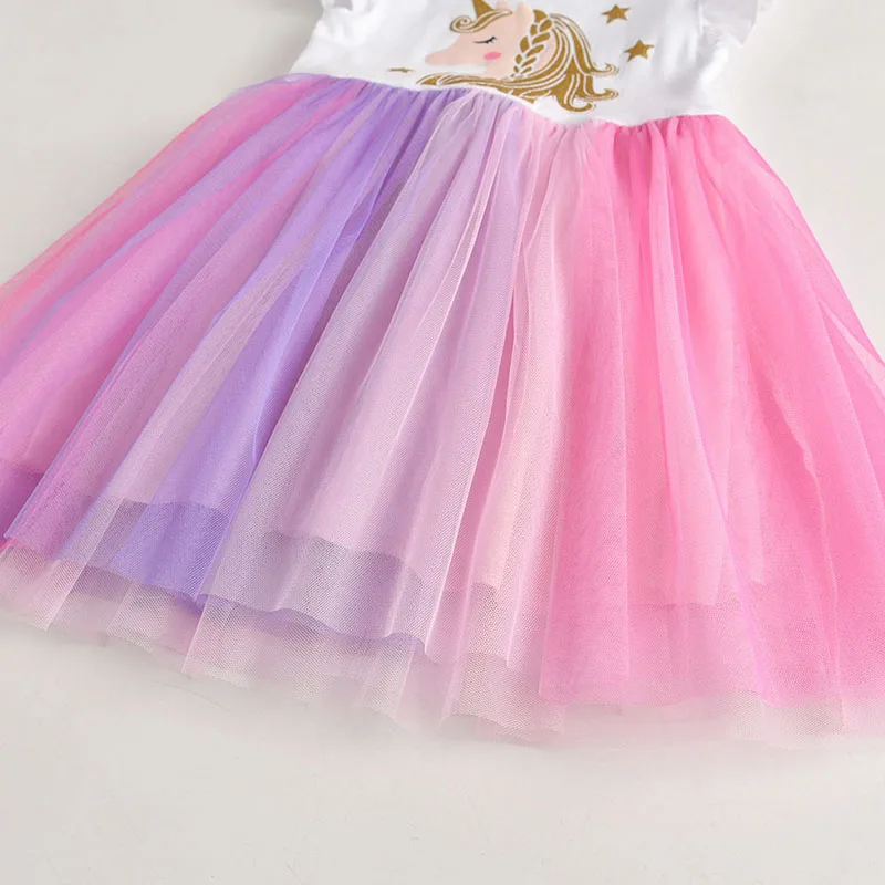 Платье-пачка для девочек DXTON, с расклешенными рукавами, с единорогом, в стиле пэчворк, для вечеринок, От 3 до 8 лет