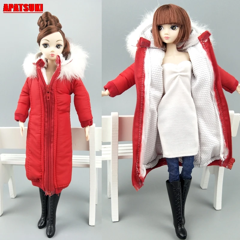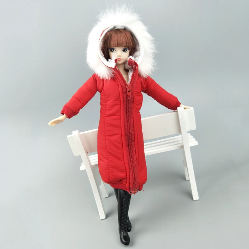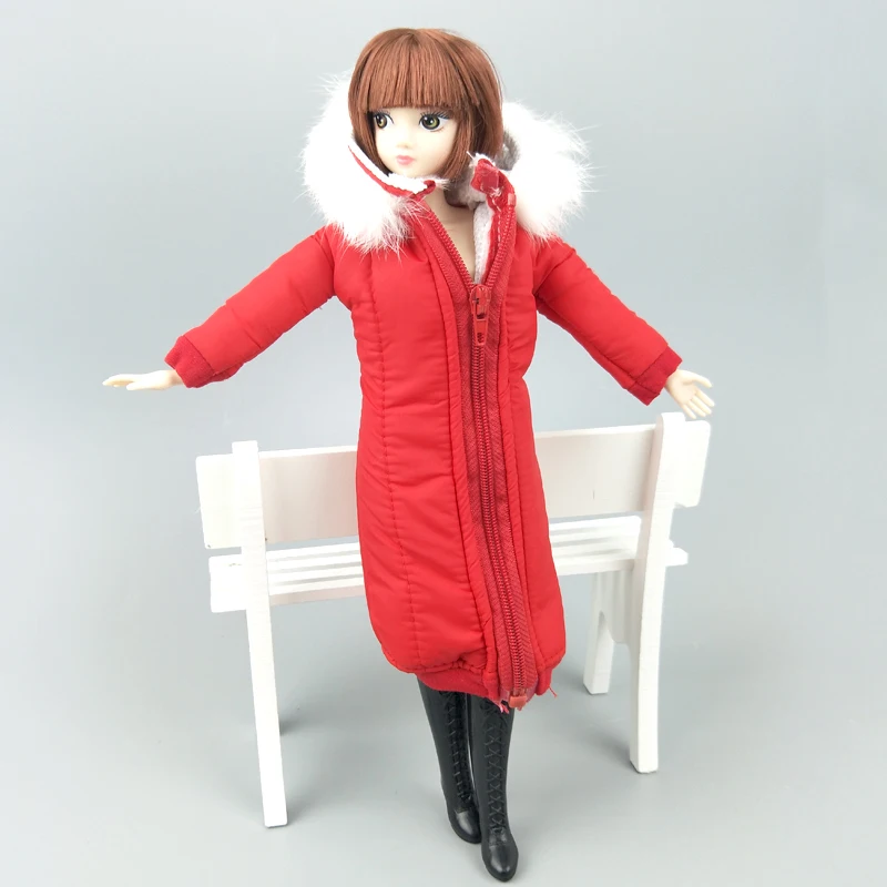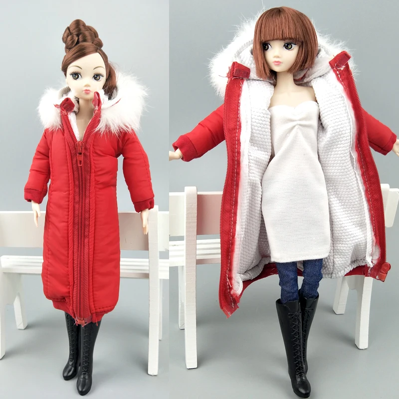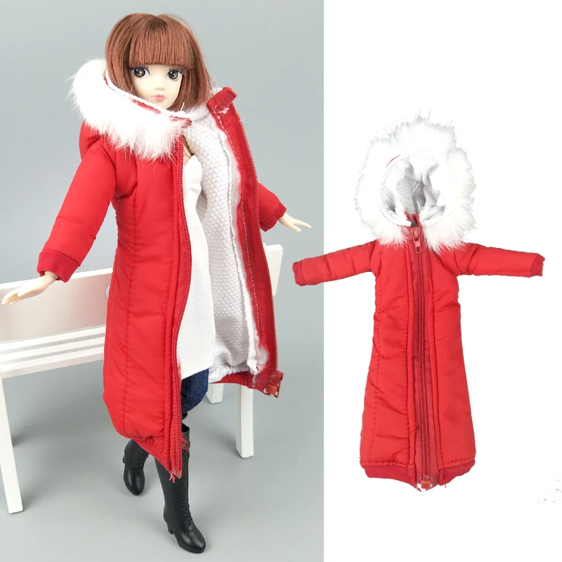 Красная Зимняя теплая одежда, длинное пальто, Одежда для куклы Барби, Одежда для куклы 16, куртка для куклы шарнирной формы 1:6, аксессуары для кукол, детская игрушка в подарок
